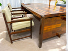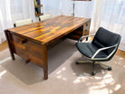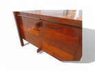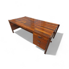 The renowned “Diplomata” desk, designed by Jorge Zalszupin in 1965 to meet the rising need for office furniture in Brasilia, is a testament to innovative design and craftsmanship. Crafted from Brazilian Rosewood, known as Jacaranda, in a patchwork style, it features a collage of several rosewood pieces, each with unique tones—a signature trait of Zalszupin's work. This method not only showcased his creativity but also utilized leftover wood scraps efficiently.