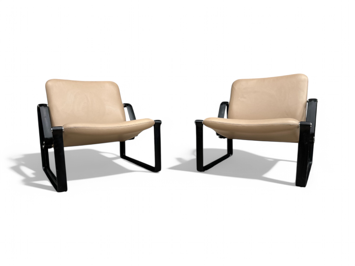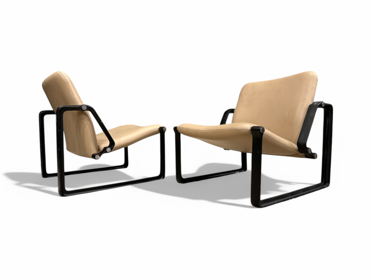 "Lobby” armchairs in Metal & Leather, Jorge Zalszupin, 1970s - Lot 325