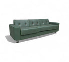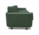 This sofa has been meticulously restored and appears brand new! Crafted with a wooden frame, it features seats upholstered in green leather, each adorned with two buttons that enhance its detailed design. Reflecting the minimalist aesthetic typical of Brazilian modern sofas, it boasts a clean and understated look without excessive detailing. This sofa is an excellent choice if you seek both comfort and elegant simplicity in your furniture.