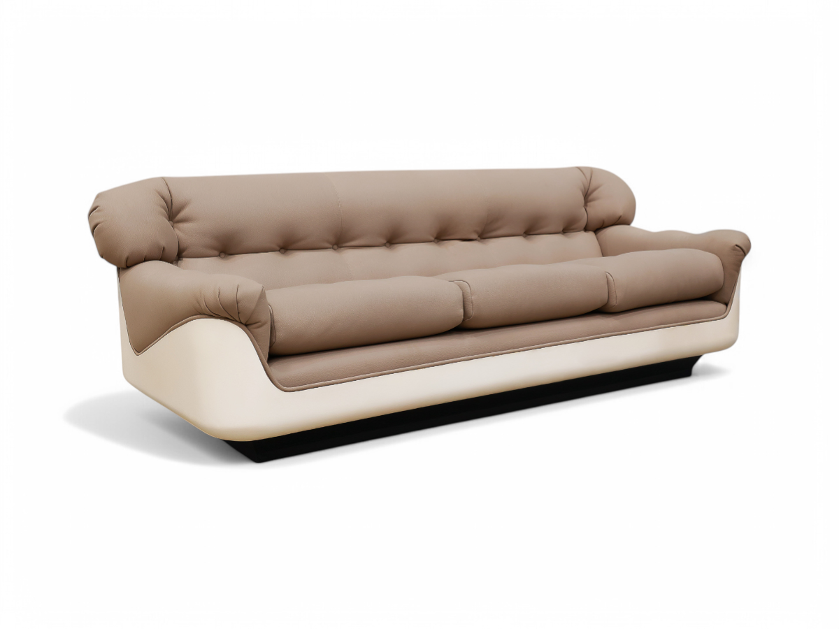 Renowned for its comfort as well as its aesthetic appeal, this sofa is an ideal addition to any home interior. The accompanying images from L'Ateliers product catalog dating back to 1970 showcase its timeless design and functionality, making it a versatile choice for modern living spaces.