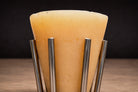 Conceived during the mid-century period, the design departs from conventional candle stands through its integration of industrial materials and sculptural geometry. Rather than serving purely as a functional object, it operates as a vertical accent within a room, articulating space through light and reflection.