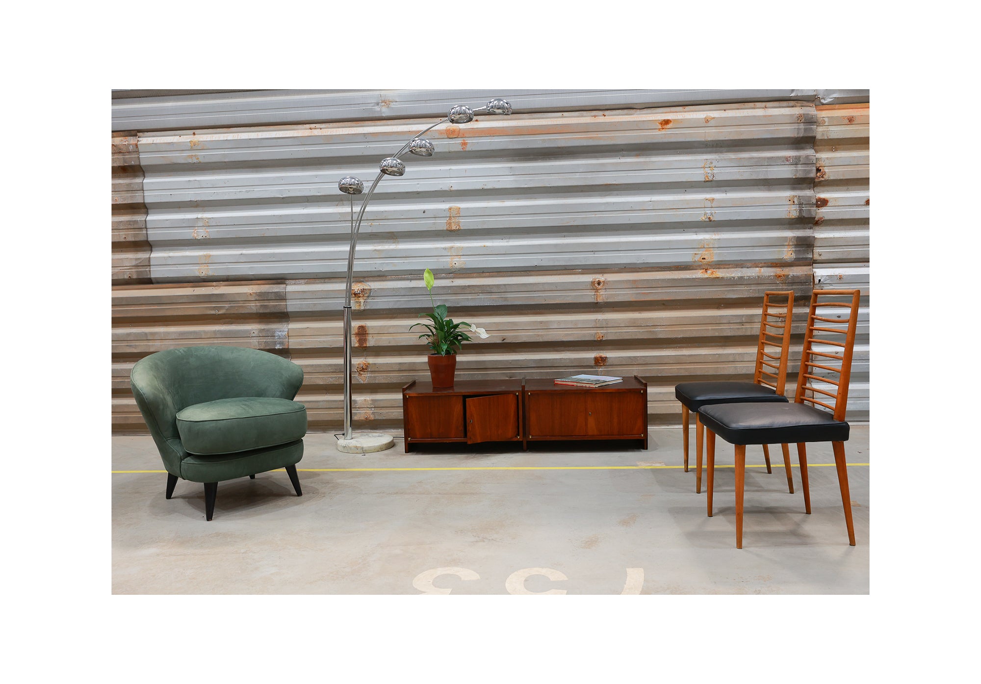 Floor Lamp with Five Bulbs in Chrome, Glass & Marble, Unknown, 1960s - Lot 349