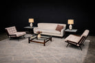 The integrated base illumination introduces an additional layer of ambient light, reinforcing the lamps’ dual function as both decorative objects and atmospheric lighting elements. The newly fitted shades maintain a clean cylindrical profile, preserving the vertical clarity of the composition while diffusing light evenly.