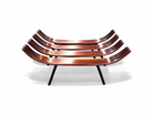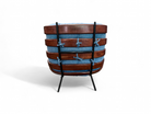The Costela armchair is an iconic Brazilian Mid-Century Modern piece. It was designed by Martin Eisler (1913 - 1977) in 1953 and manufactured by the companies Móveis Artesanal and Forma S.A. Móveis e Objetos de Arte, where he was partner and co-founder. The name "Costela", which translates as "Rib", is apparent in the design with its eight wooden slats that resemble a rib structure made with Brazilian hardwood. The slats are rhythmically positioned and curve upwards on the sides, gently embracing the softly padded cushions. A curved steel frame with short legs creates the necessary support. The comfortable cushions are reupholstered as historical references, tufted with buttons, and kept in place by tied strings at the back and bottom.