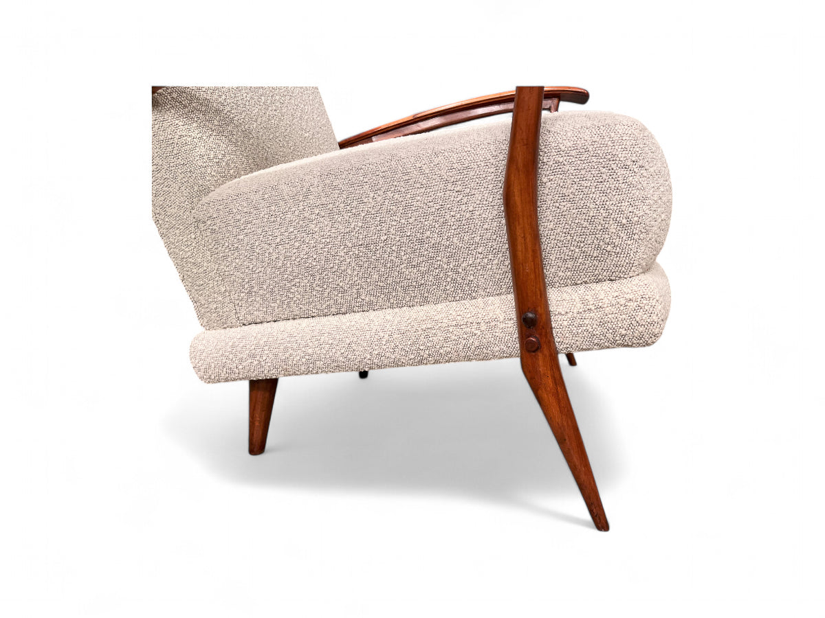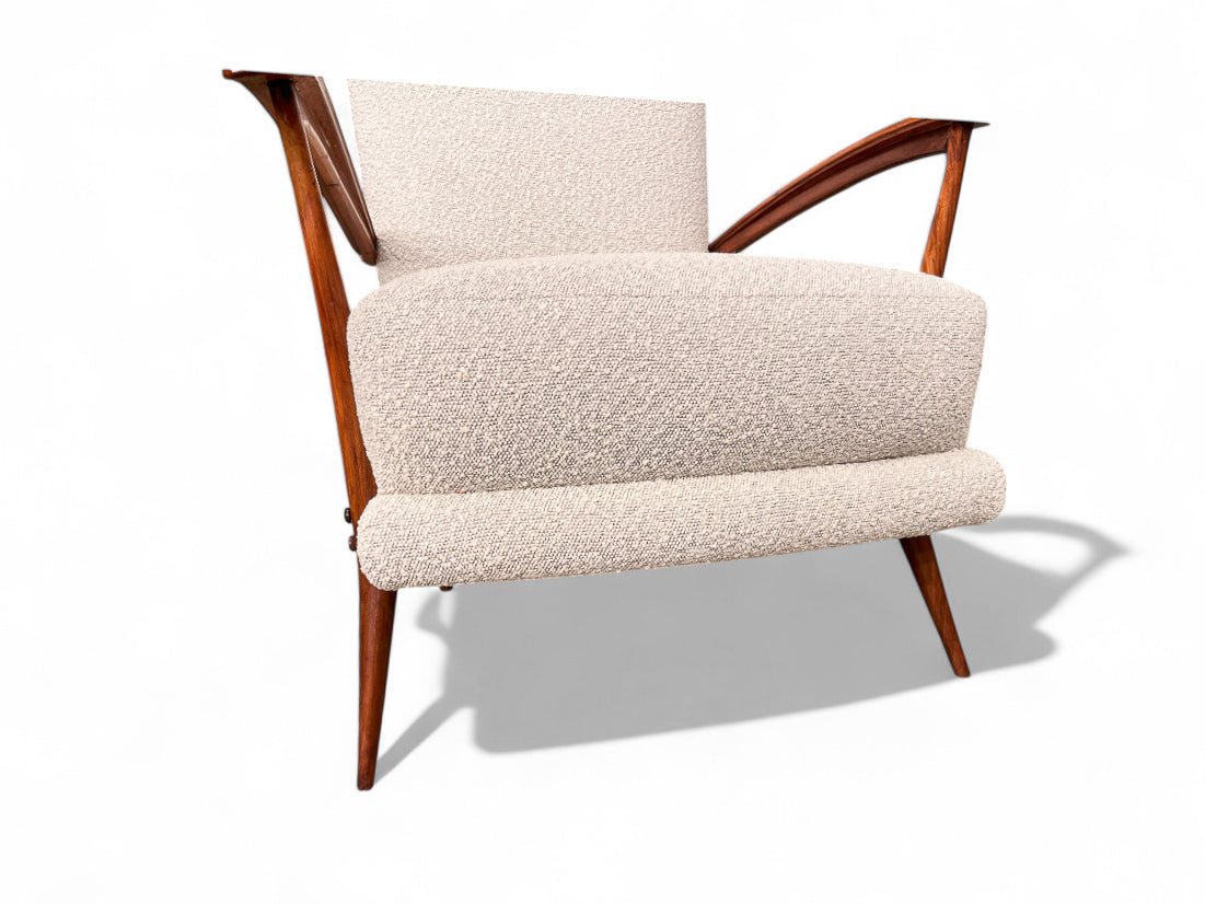 Armchair in Caviuna wood, Leather and Bouclé, Giuseppe Scapinelli, 1950s - Lot 210