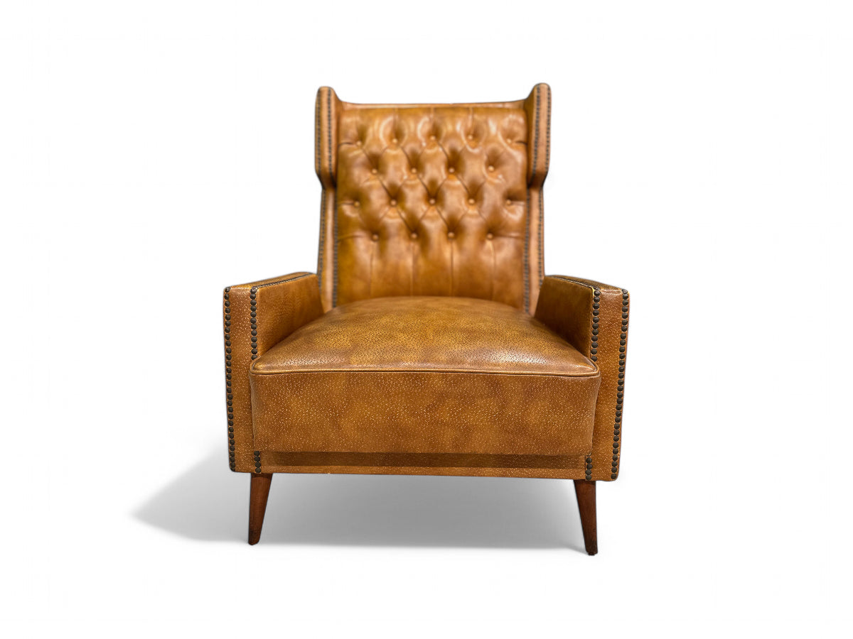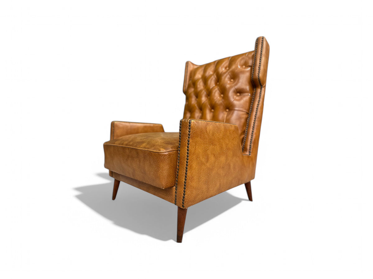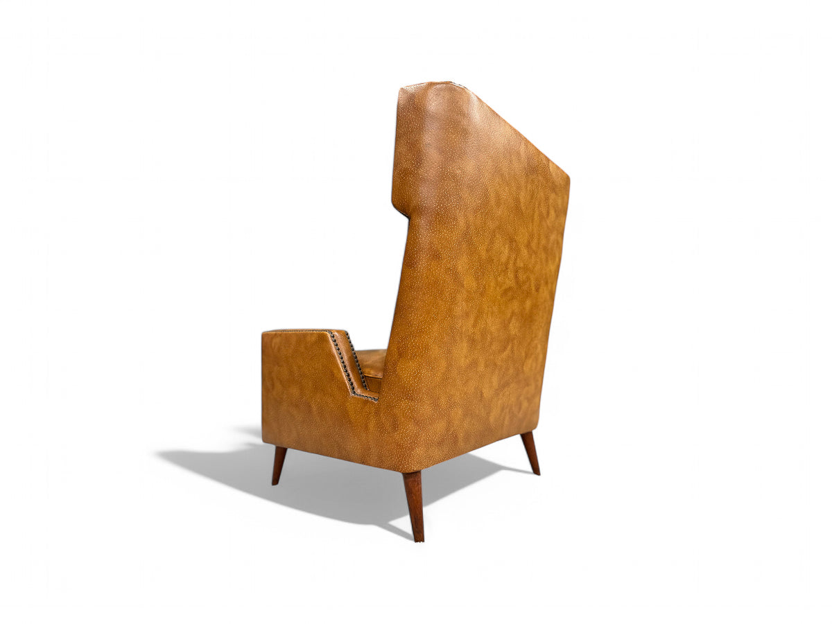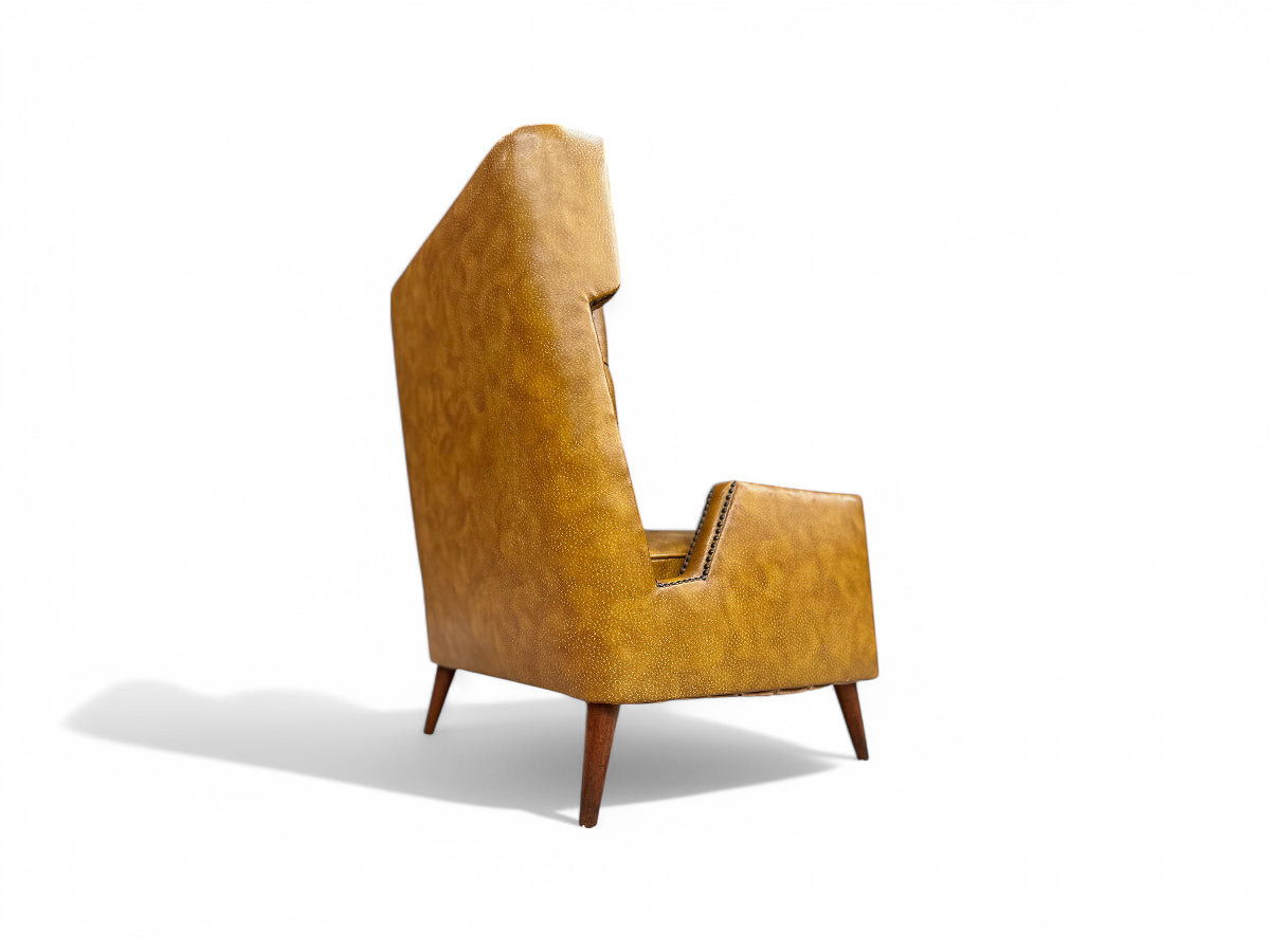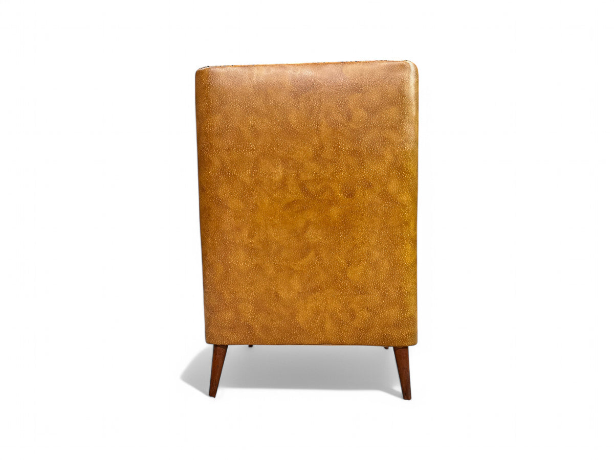 This faux leather armchair remains unchanged since its creation in the 1950s, with no alterations or reupholstering done since. It stands as one of Giuseppe Scapinelli's most renowned designs, featured prominently in numerous publications, including the cover of Casa e Jardim, 1956, no. 30 (Brazil House & Garden), and Giuseppe Scapinelli’s book.
