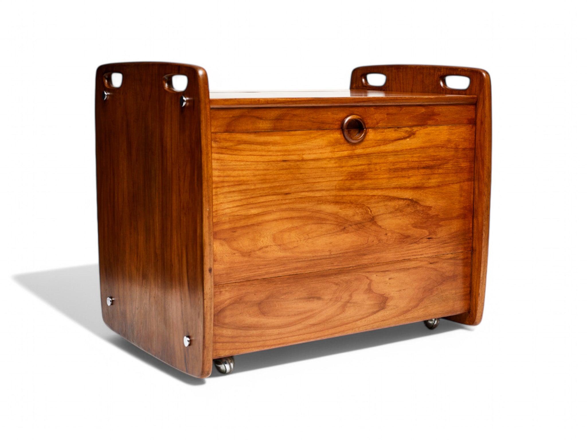 Bar Cart in Freijo Wood & with Chrome Wheels, Sergio Rodrigues, 1960s - Lot 80