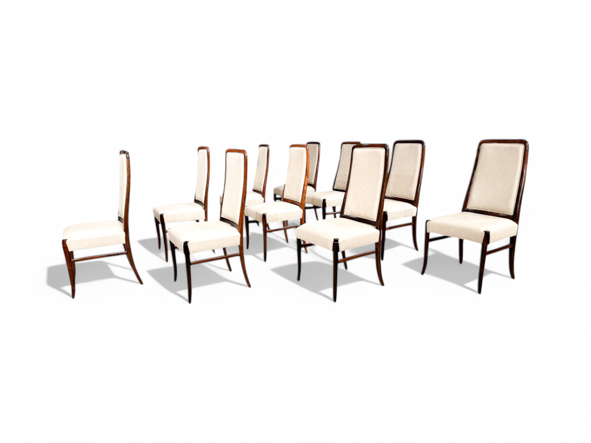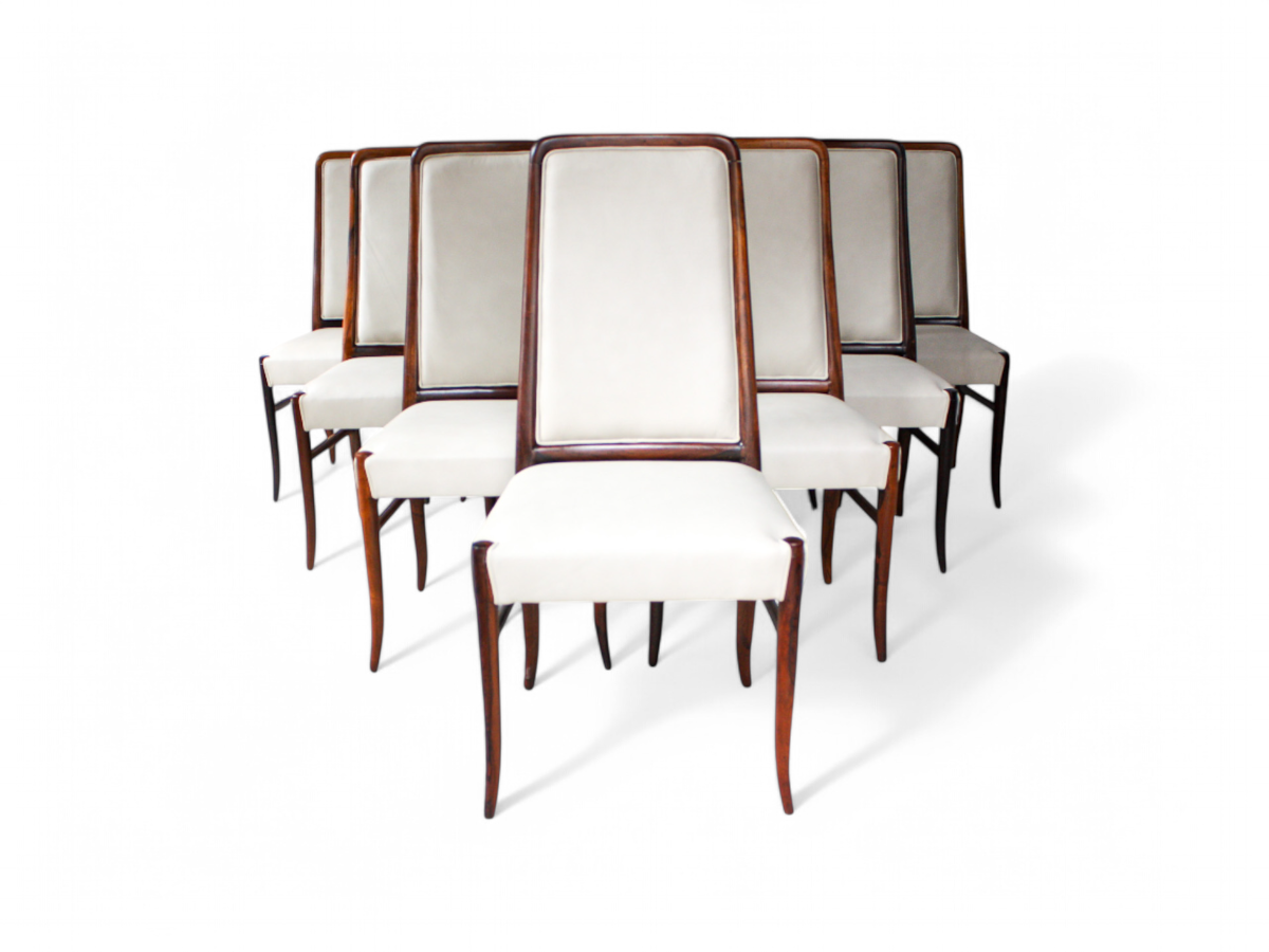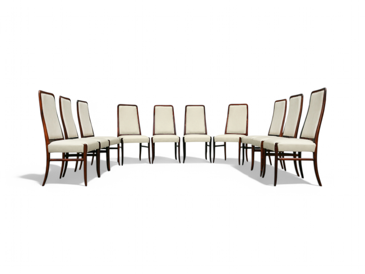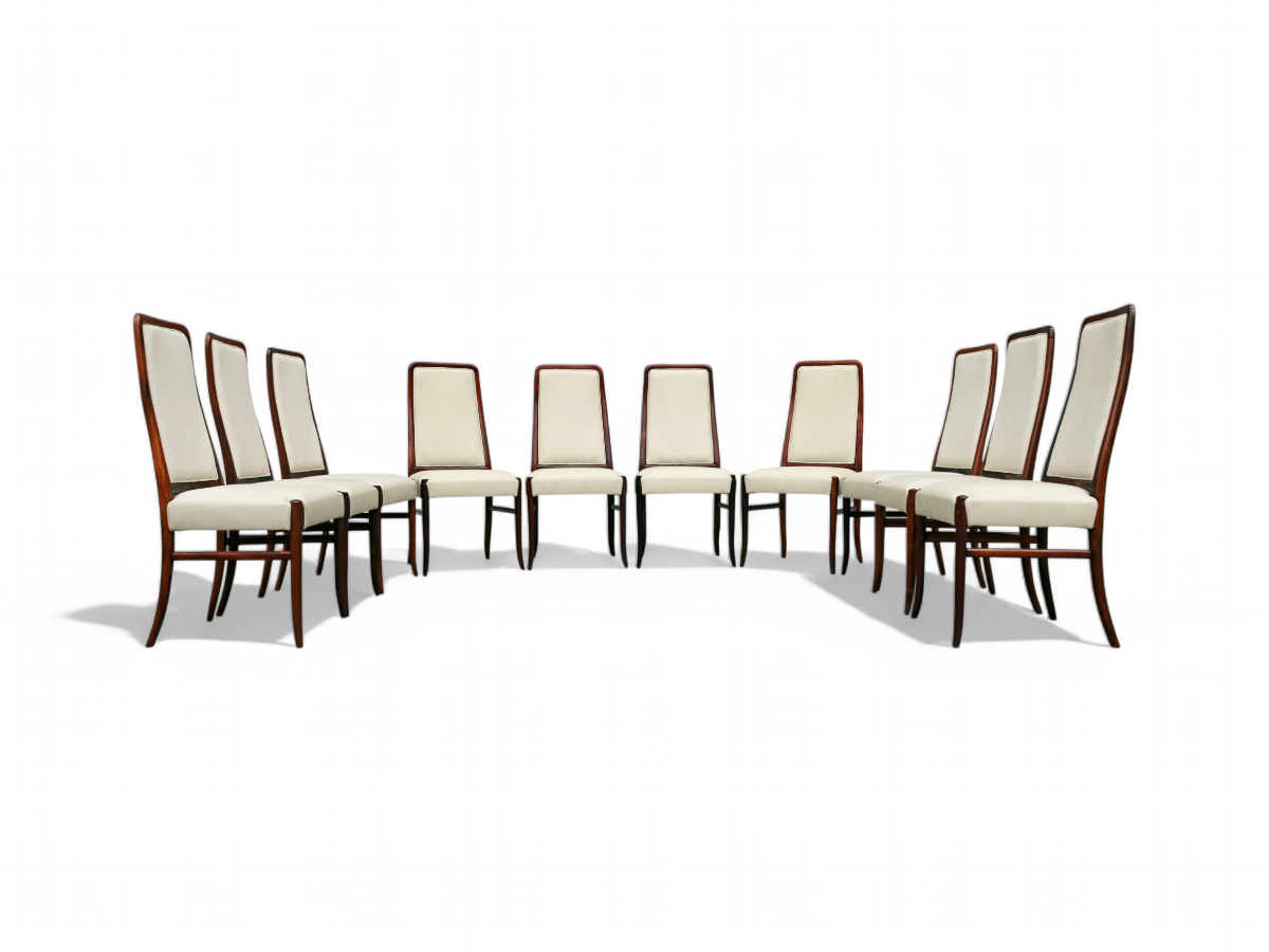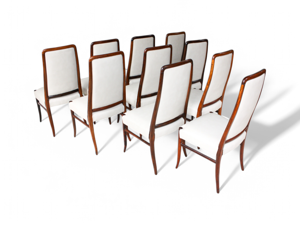 Set of 10 Dining Chairs in Rosewood & Leather, Joaquim Tenreiro, 1960s - Lot 199
