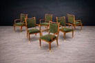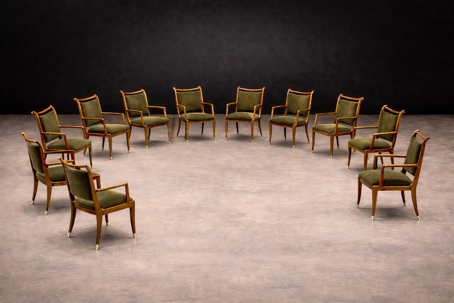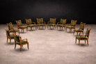 When arranged together, the chairs create an impressive visual field—an ensemble that reads almost as a sculptural installation. Sets of this scale by Scapinelli are exceedingly uncommon; the survival of twelve matching examples in such harmonious condition is particularly noteworthy.