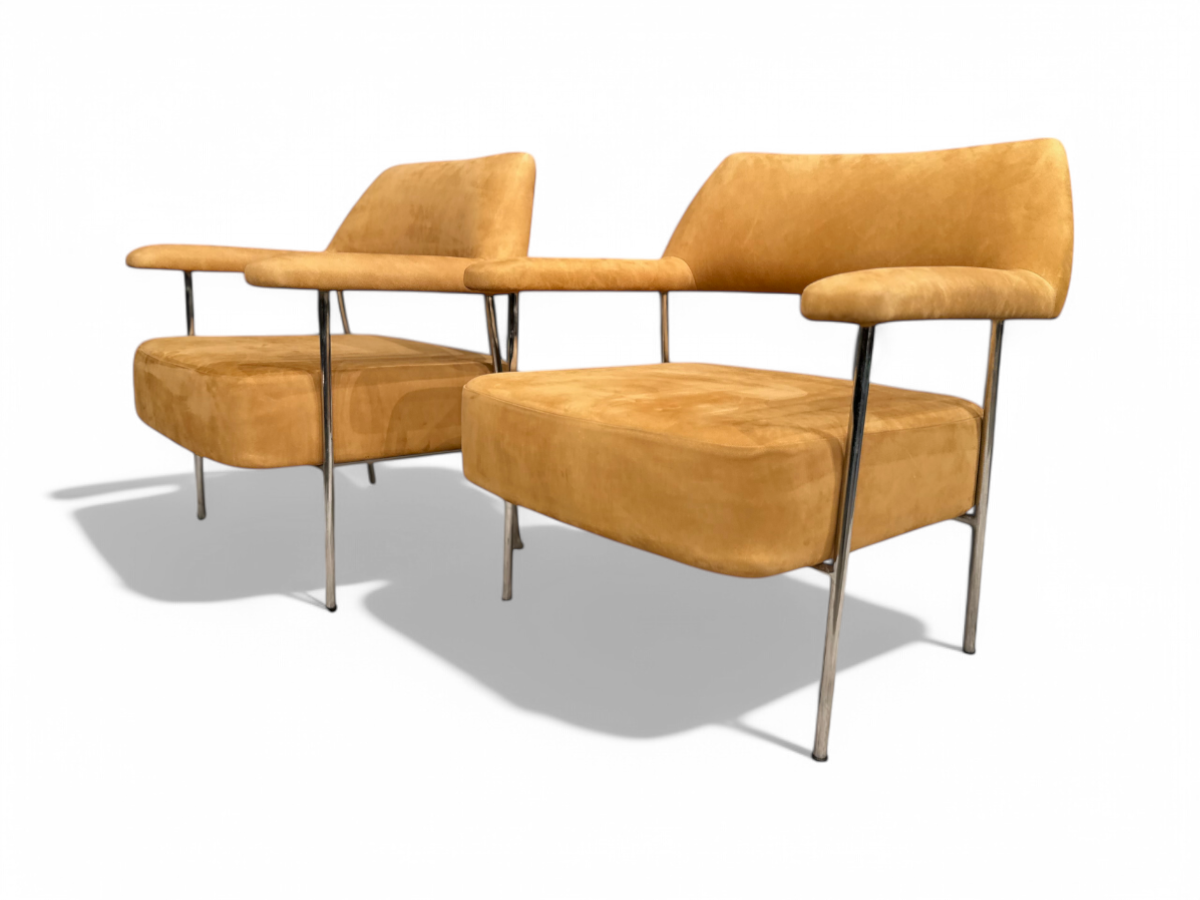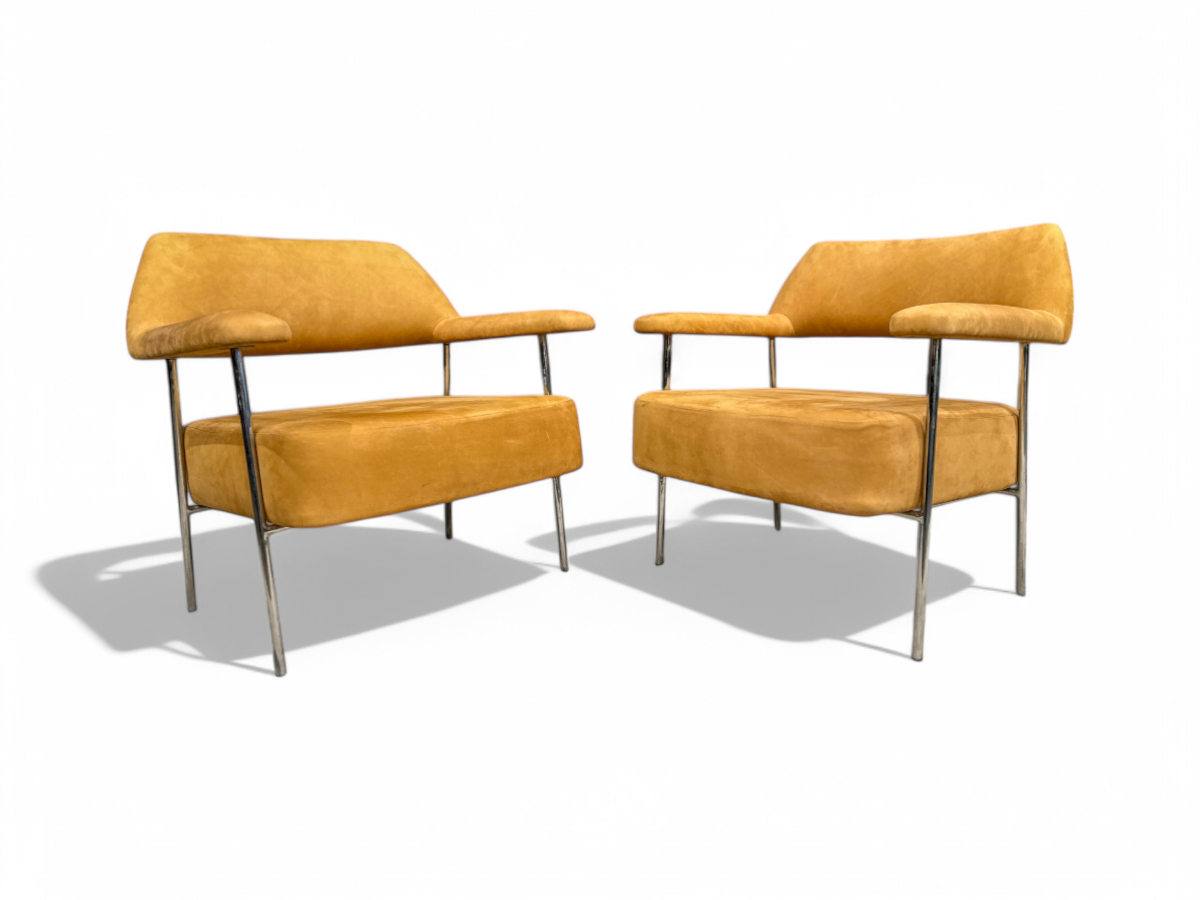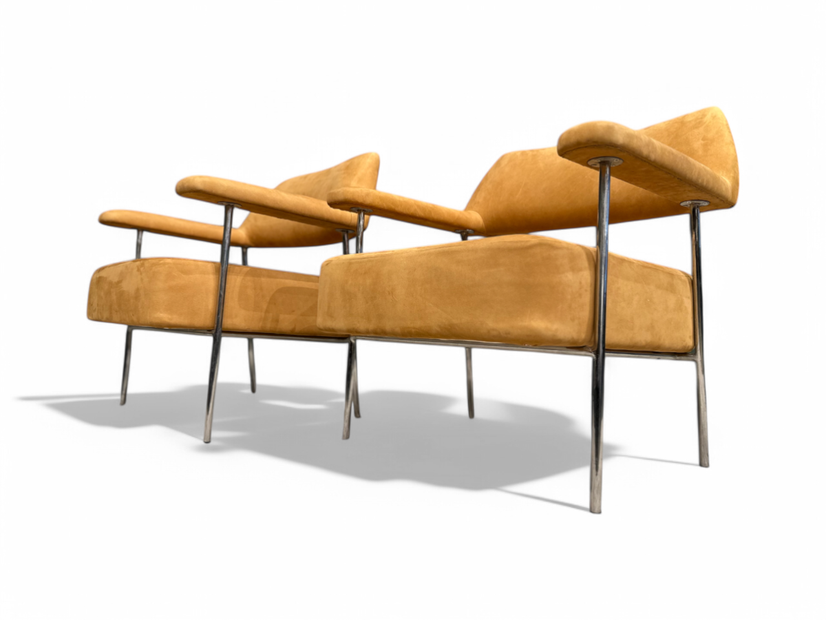 Pair of Armchairs in Metal & Nobuck leather, Joaquim Tenreiro, 1950s - Lot 322