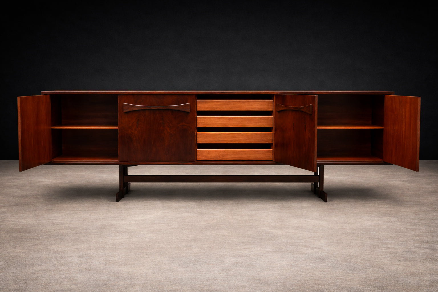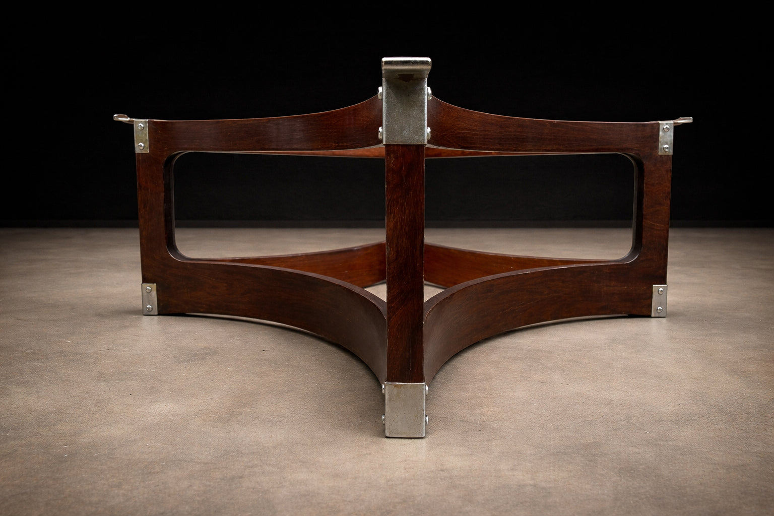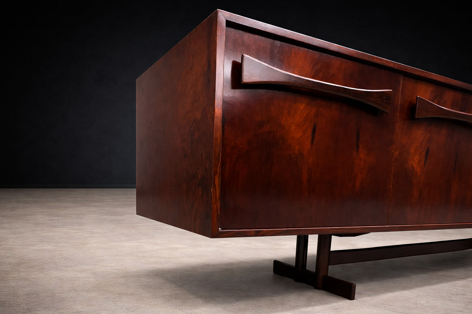 Founded in São Paulo by Francesco Scapinelli, brother of noted designer Giuseppe Scapinelli, Studio Novo Rumo became a key name in mid-century Brazilian furniture. The studio produced elegant, finely crafted pieces in Bahia Jacarandá, combining industrial precision with artisanal quality.