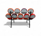 Revolutionary in its time, the sofa departed from traditional designs by employing a modular approach with separate upholstered discs. This allowed for customization in both color and arrangement, offering versatility and a unique aesthetic. The discs are supported by a robust steel frame, contributing to its distinctive mid-century modern appeal.
