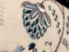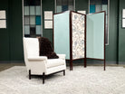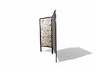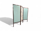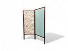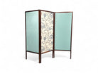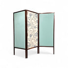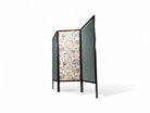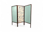 This striking screen comprises three panels crafted from Brazilian Rosewood. The wood has been carefully restored to highlight its beautiful natural veins. The upholstered panels feature two luxurious fabrics, with the central panels adorned with embroidered designs of natural motifs in Central Asian style. The ends are finished with ultra-smooth, silky Ultra suede in pistachio green. This versatile piece can serve as a room divider or an accent piece on its own. It can be fully extended, partially closed, or completely folded, depending on the space available. Regardless of its configuration, it is sure to be a showstopper.