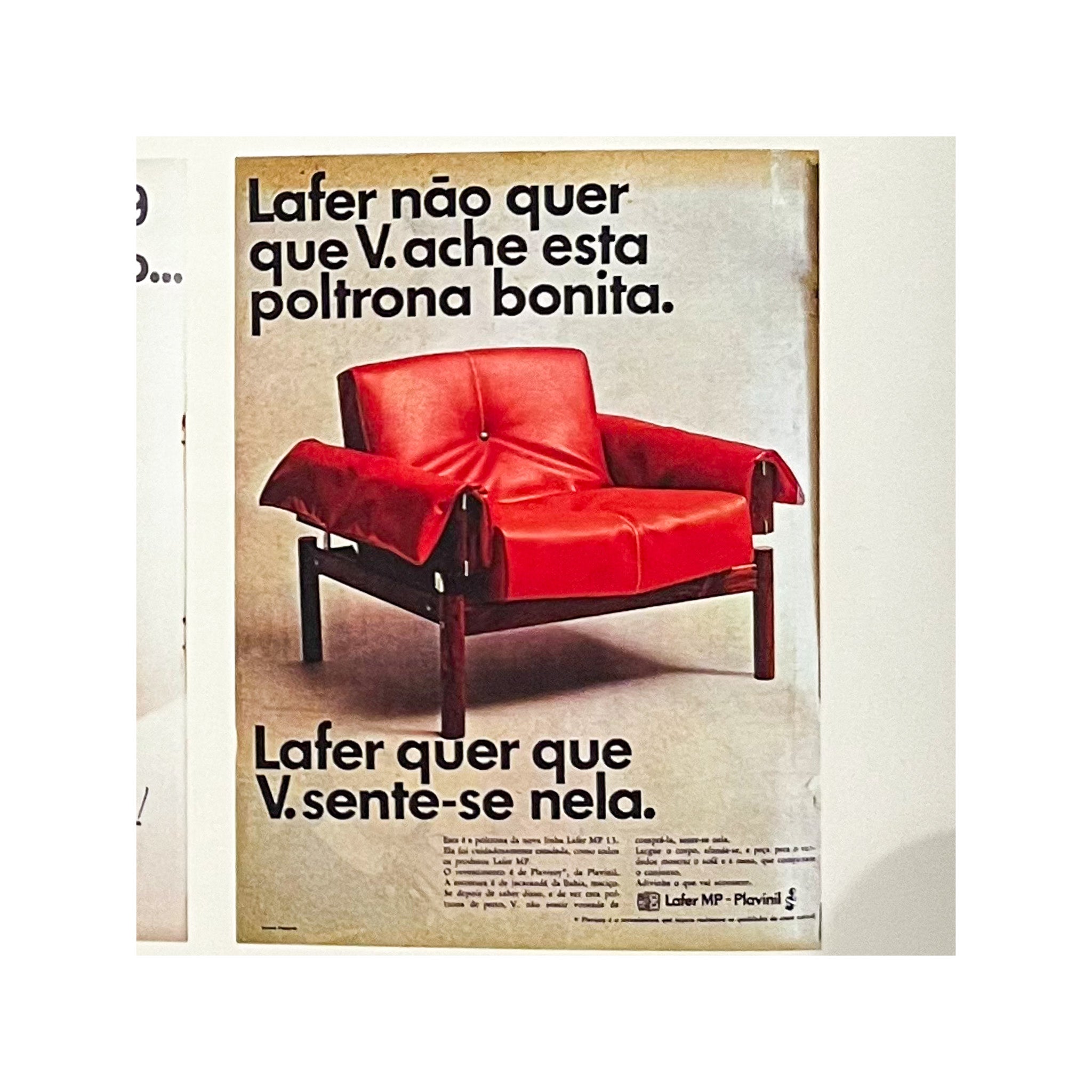Lafer's patented, solution-based designs aimed to reach a broader audience, using contemporary methods of production and expert craftsmanship to create affordable, high-quality pieces for the middle class. His work connected the principles of inclusivity with the aesthetic value of mid-century Modernism. His furniture features traditional curved wooden structures and notably comfortable upholstery- detachable for convenient reassembly and reflective of Brazilian terrain and culture. Lafer's originality and honest intentions cemented his reputable role as a designer in the Brazilian Modernist era.
