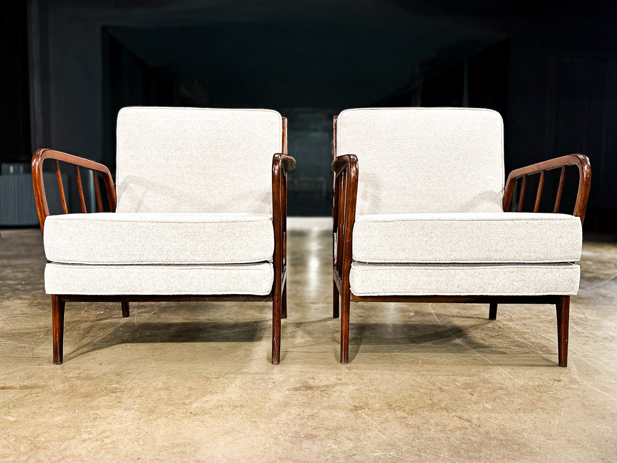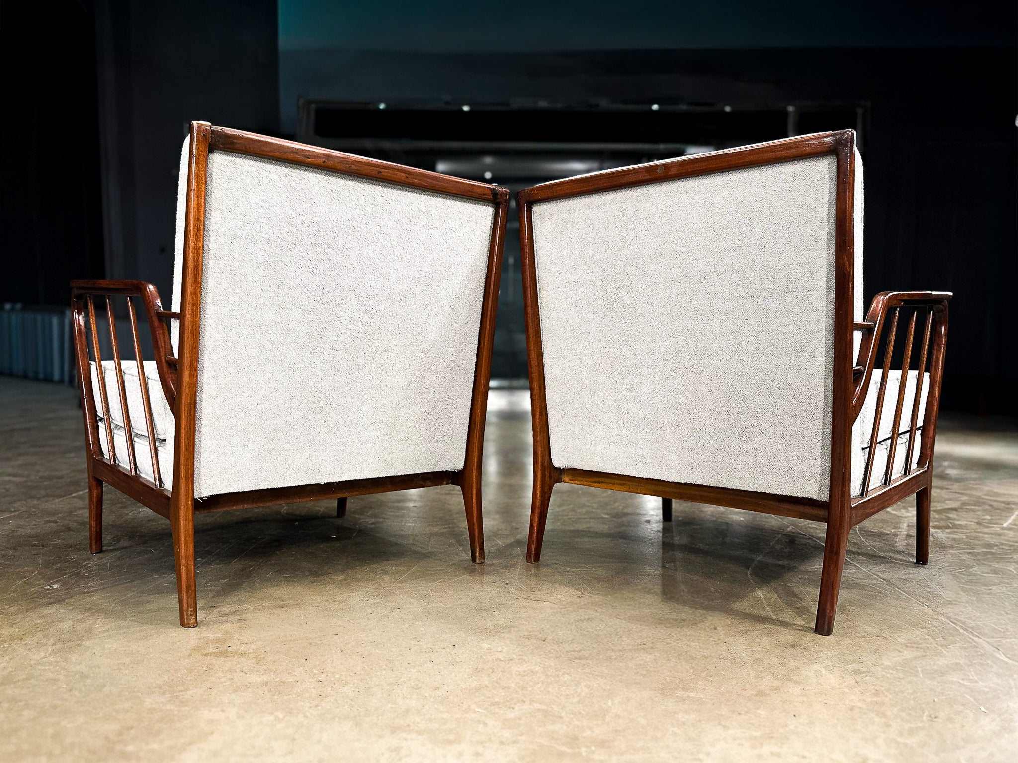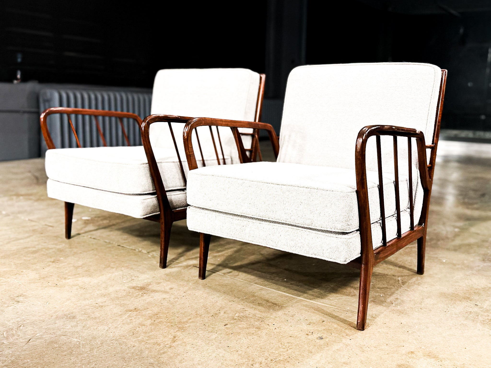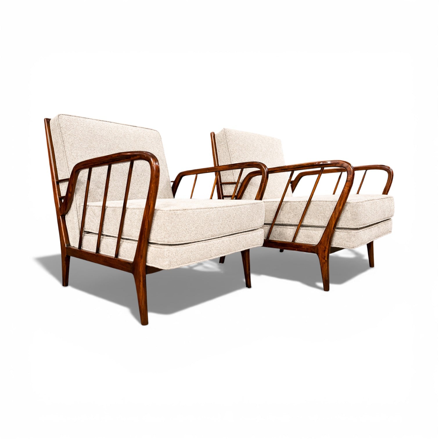 Mid-Century Brazilian Armchairs by Rino Levi, Hardwood & Boucle, 1960s - Lot 394A