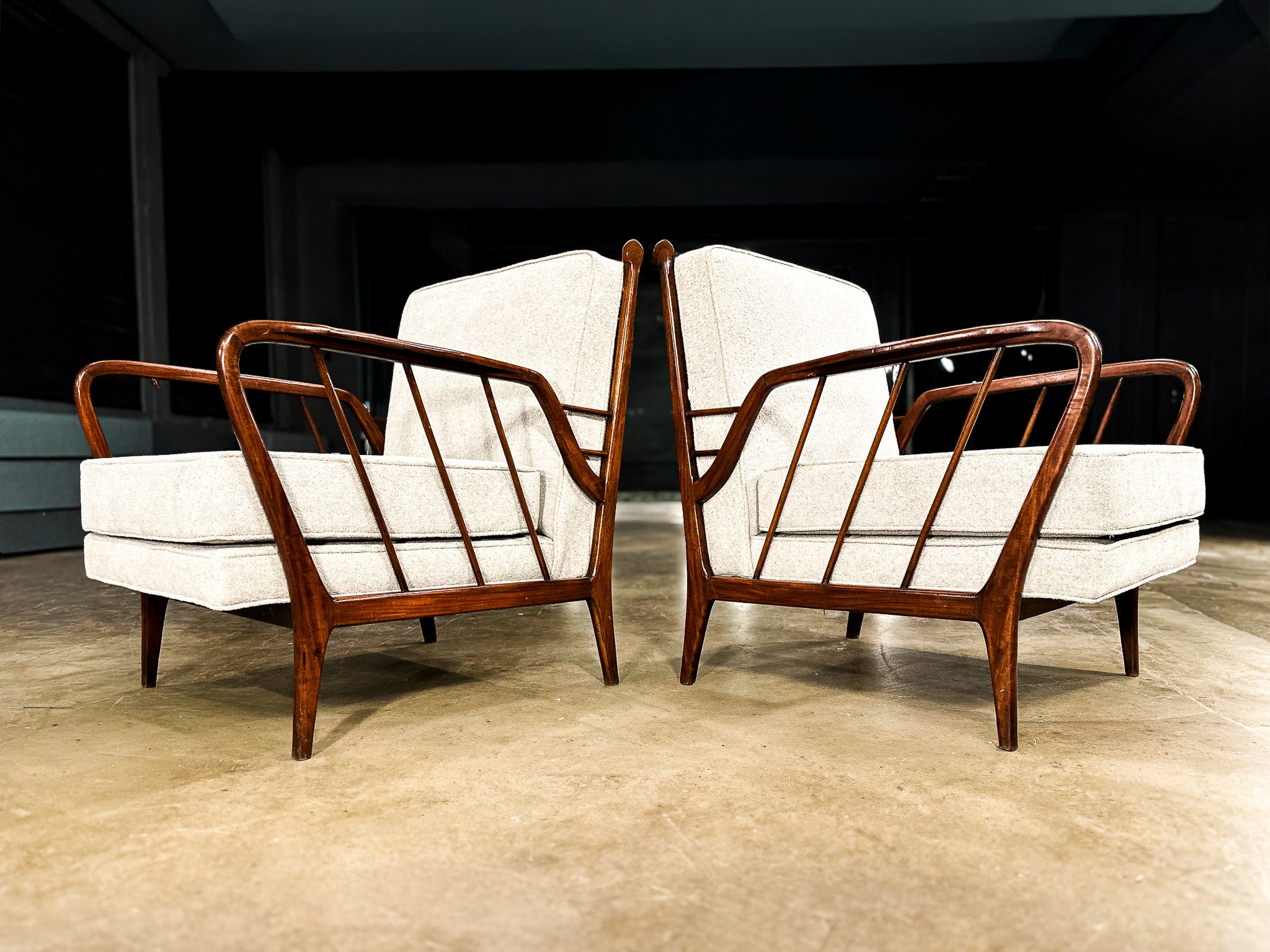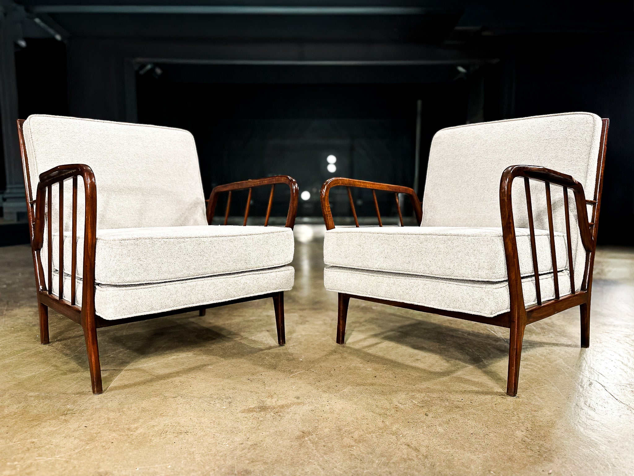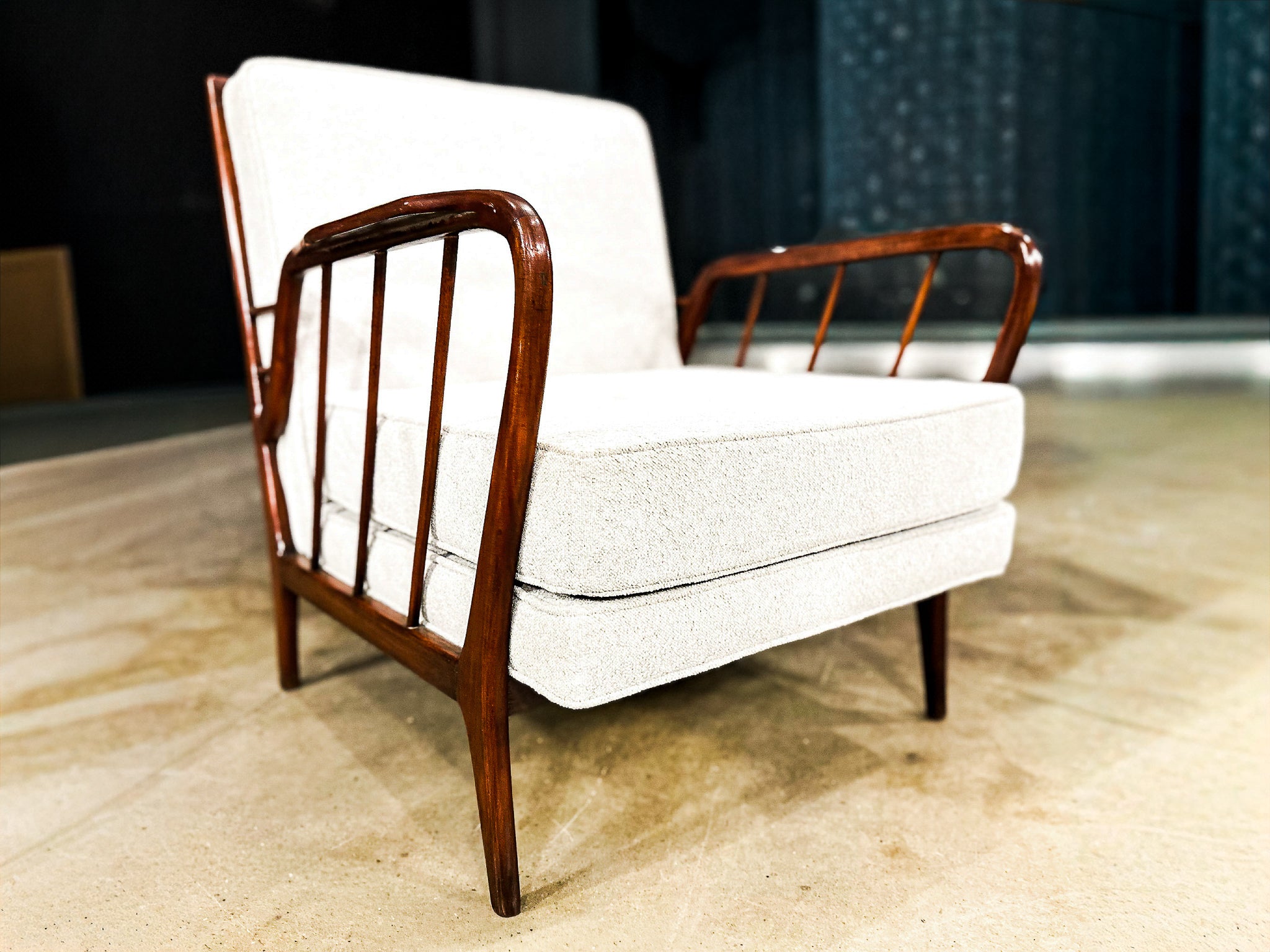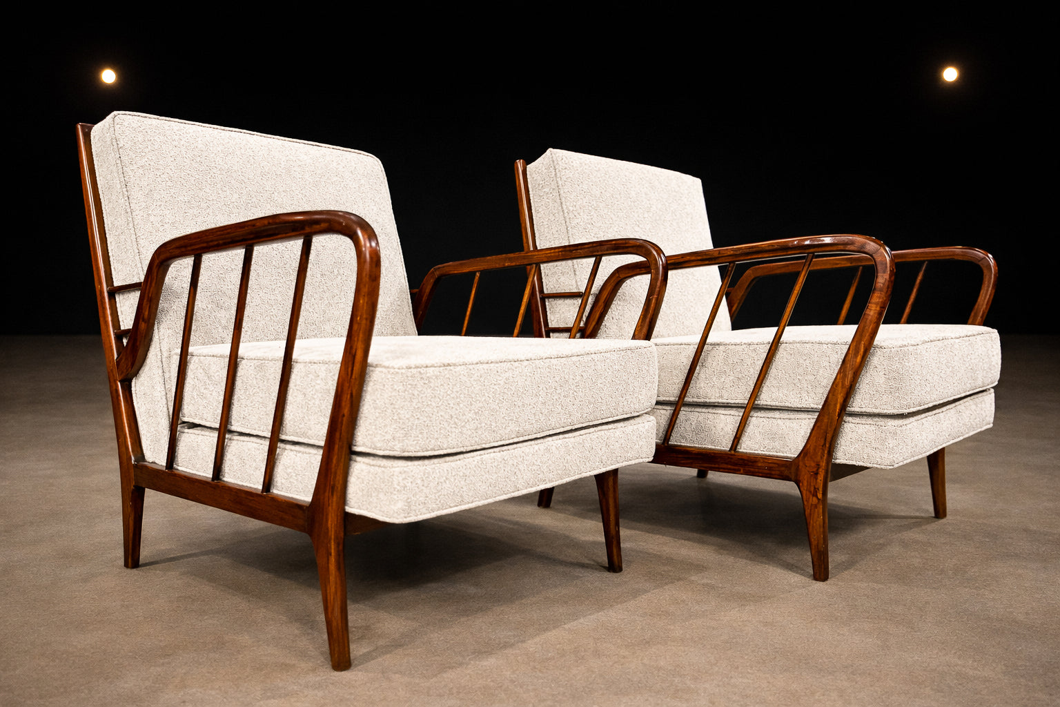 Mid-Century Brazilian Armchairs by Rino Levi, Hardwood & Boucle, 1960s - Lot 394A