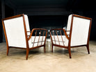 This rare pair of armchairs, designed by Rino Levi in the 1950s, exemplifies the refined intersection of Brazilian modernism, architecture, and craftsmanship. Best known as one of Brazil’s most influential modern architects, Levi brought a distinctly architectural sensibility to furniture design—prioritizing clarity of structure, elegant proportions, and material honesty.