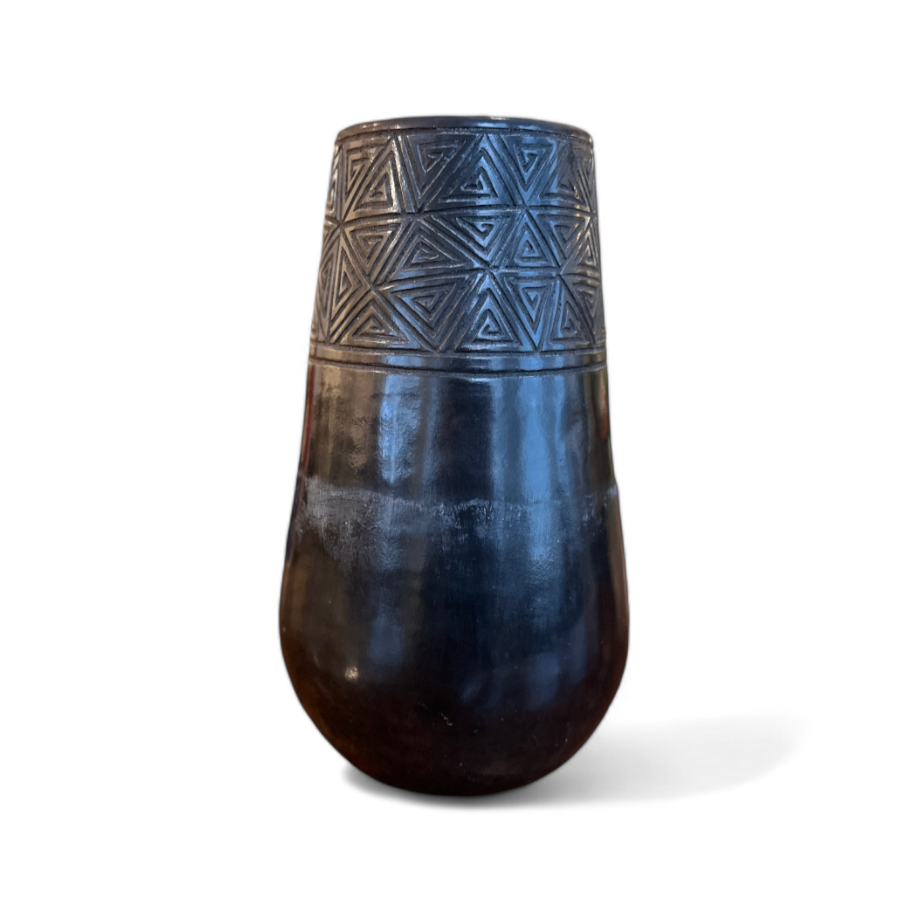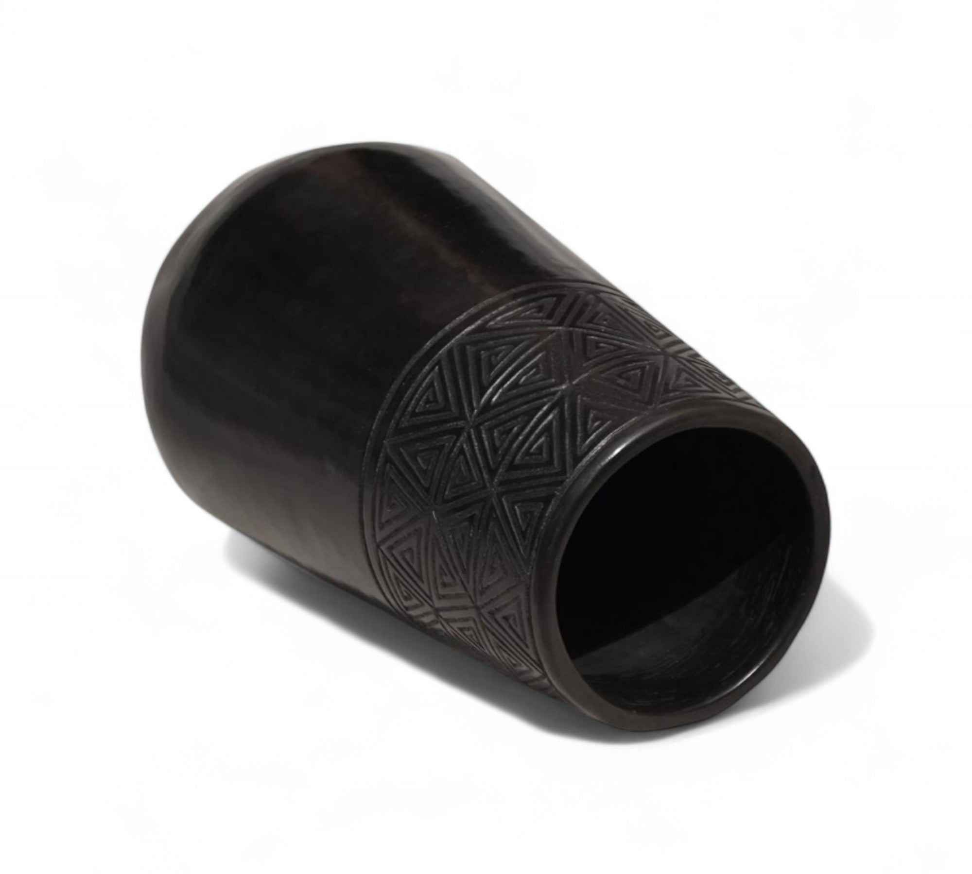 “Triangles” Hand Painted Flower Vase, Black Clay, Estudio Artesano, 2024 - Lot 778