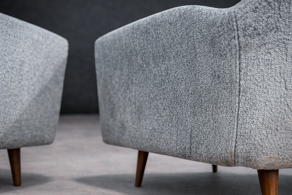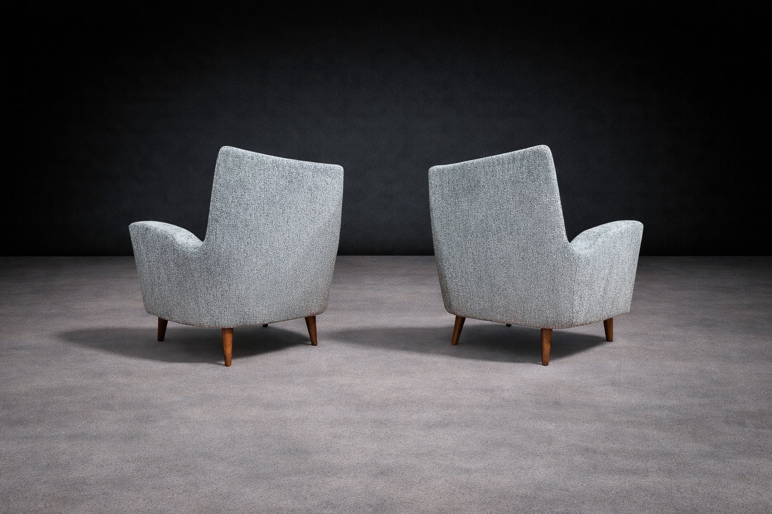 Function is fully absorbed into the form: generous proportions, supportive backs, and softly rounded arms create a relaxed and inviting sit. Acquired from a private estate in São Paulo, the armchairs are presented in excellent vintage condition, with refreshed upholstery in a period-appropriate material. A restrained and collectible example of Scapinelli’s seating designs, this pair reflects the designer’s enduring synthesis of comfort, craft, and modern elegance.