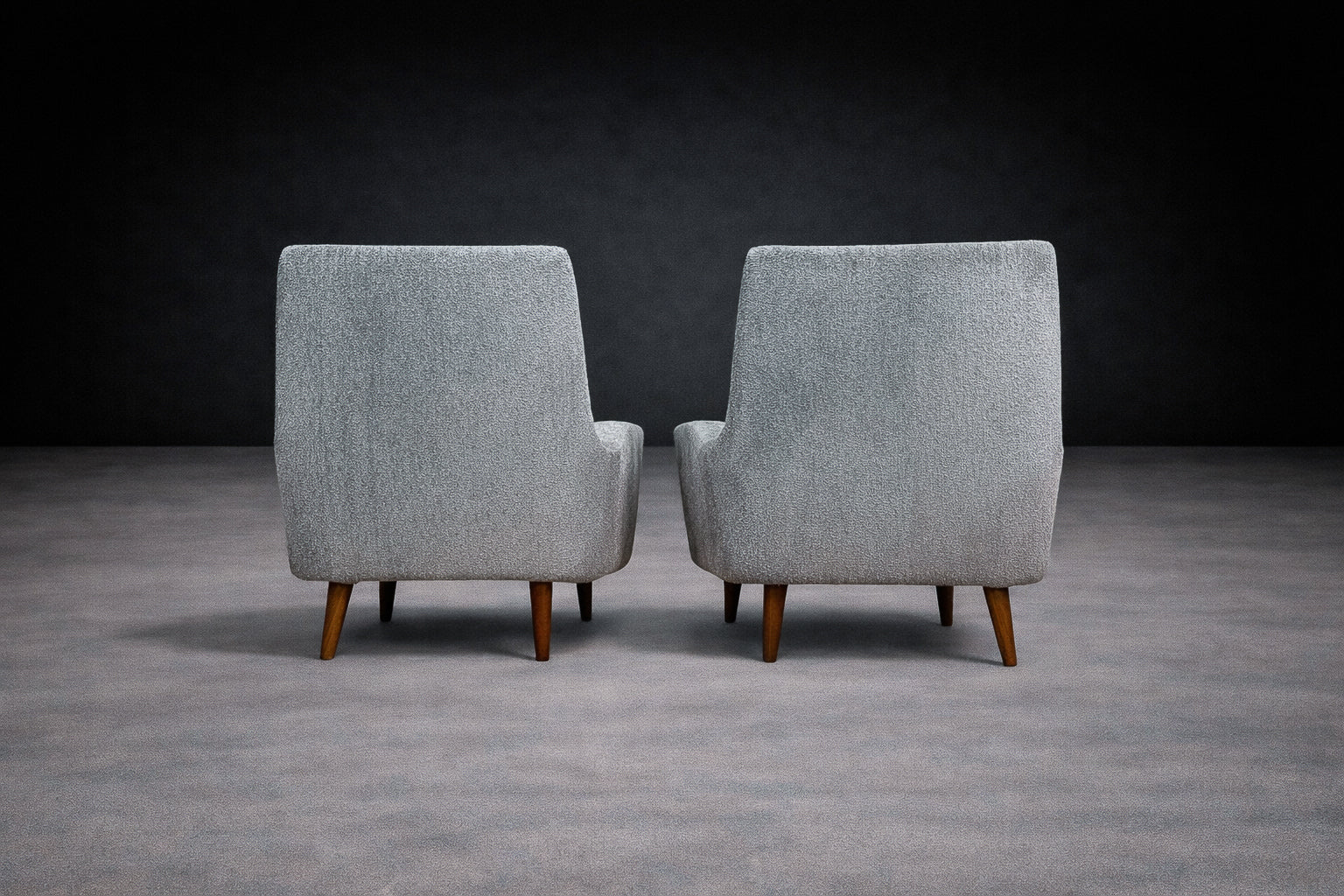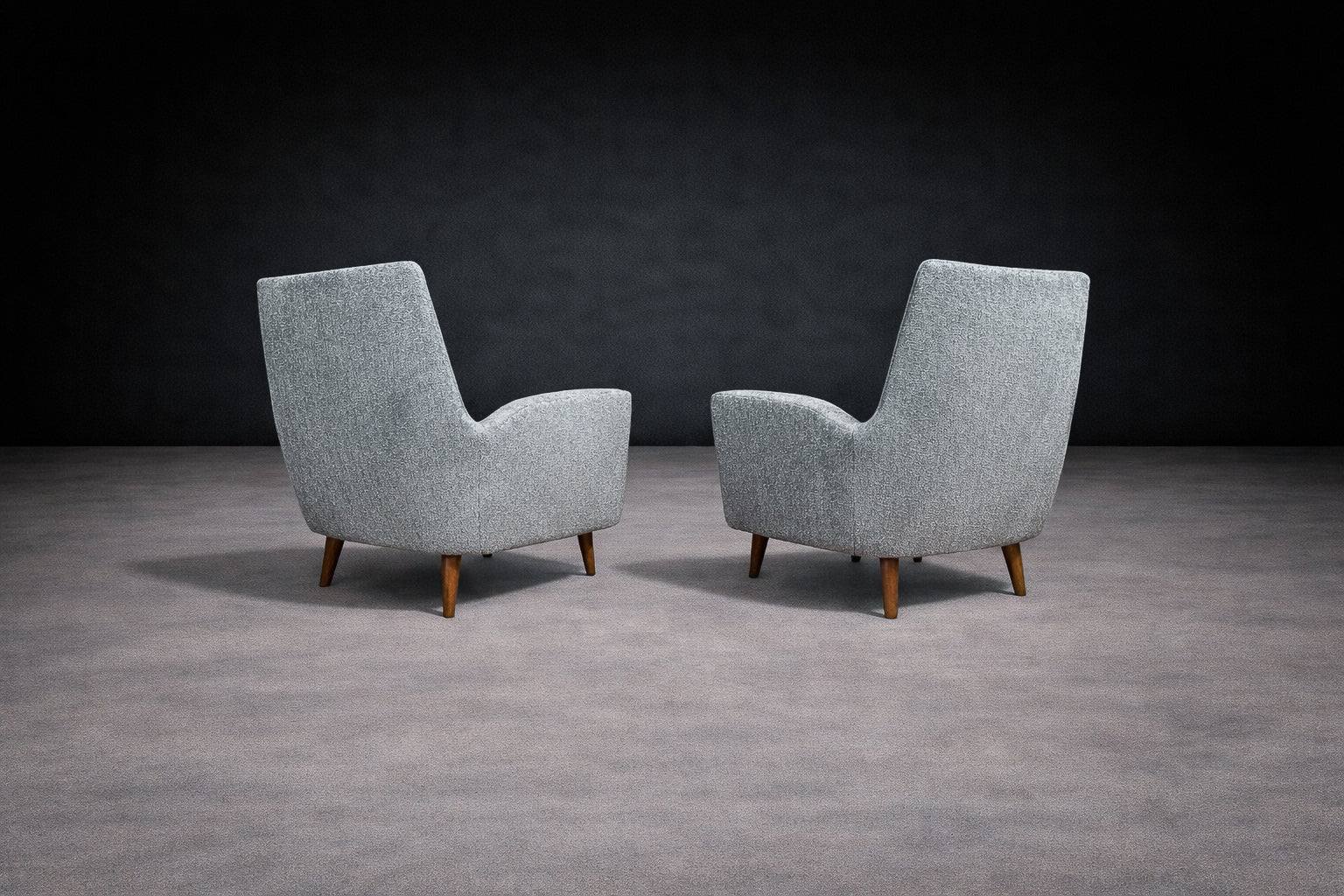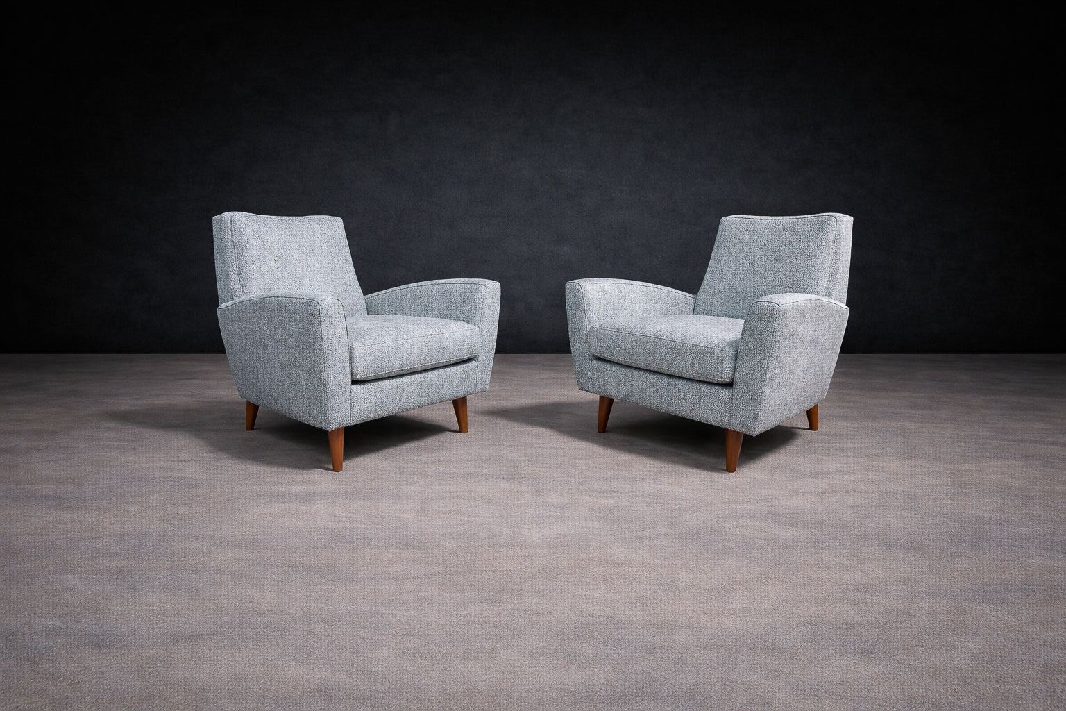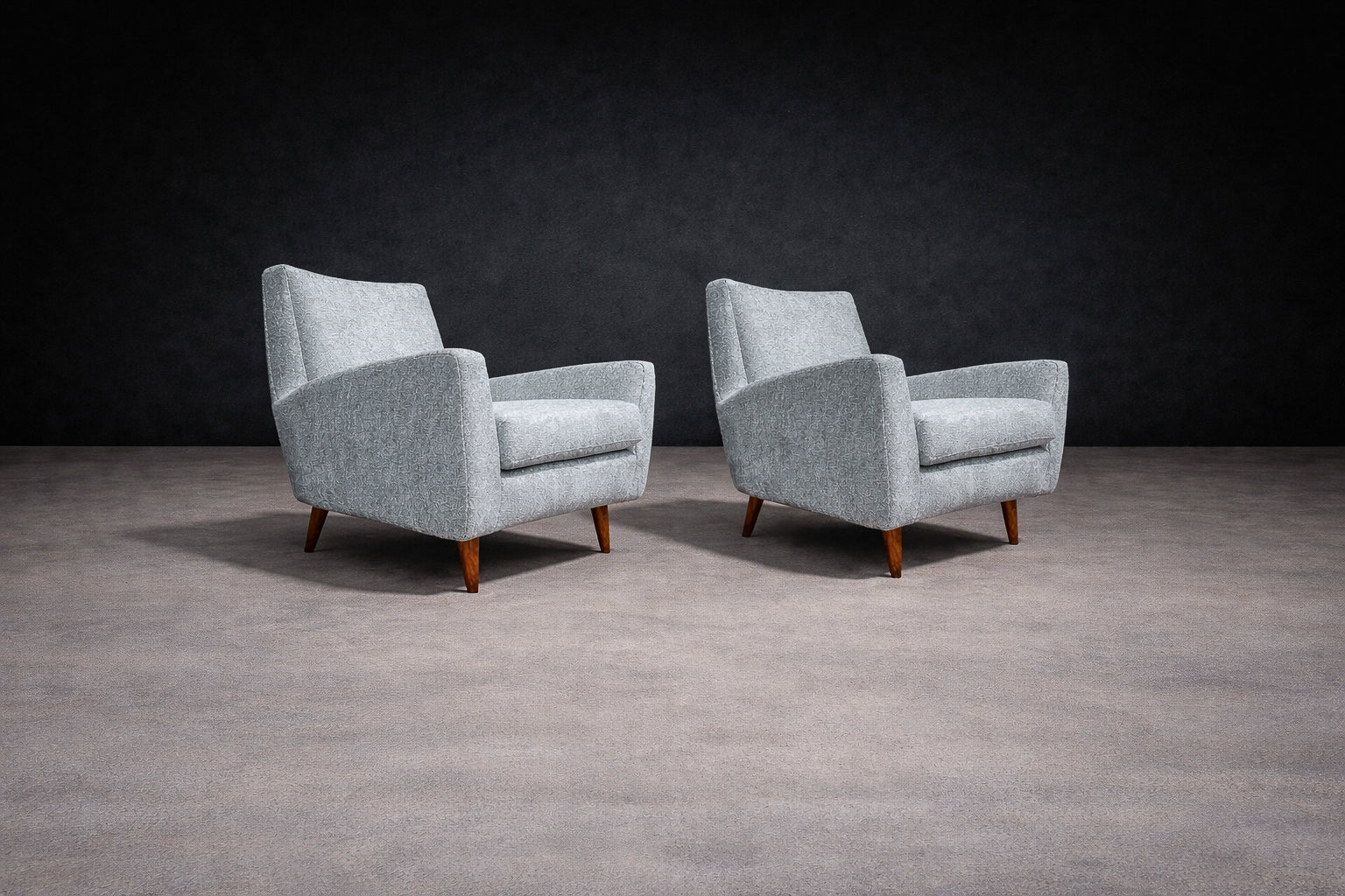 Attributed to Giuseppe Scapinelli (1911–1974), this pair of armchairs exemplifies the designer’s refined approach to Brazilian modernism, shaped by his Italian training and long practice in São Paulo. Produced during Scapinelli’s mature period, the chairs reflect his ongoing exploration of comfort, proportion, and sculptural restraint, situating them firmly within the postwar evolution of modern domestic design in Brazil.