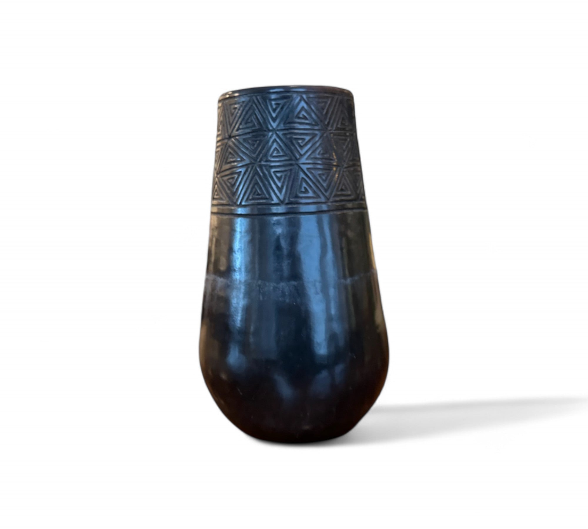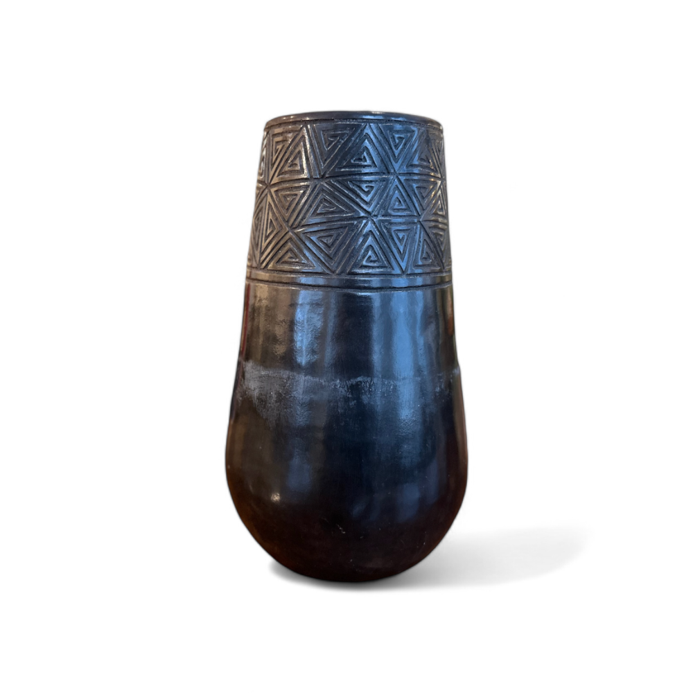 “Triangles” Hand Painted Flower Vase, Black Clay, Estudio Artesano, 2024 - Lot 778