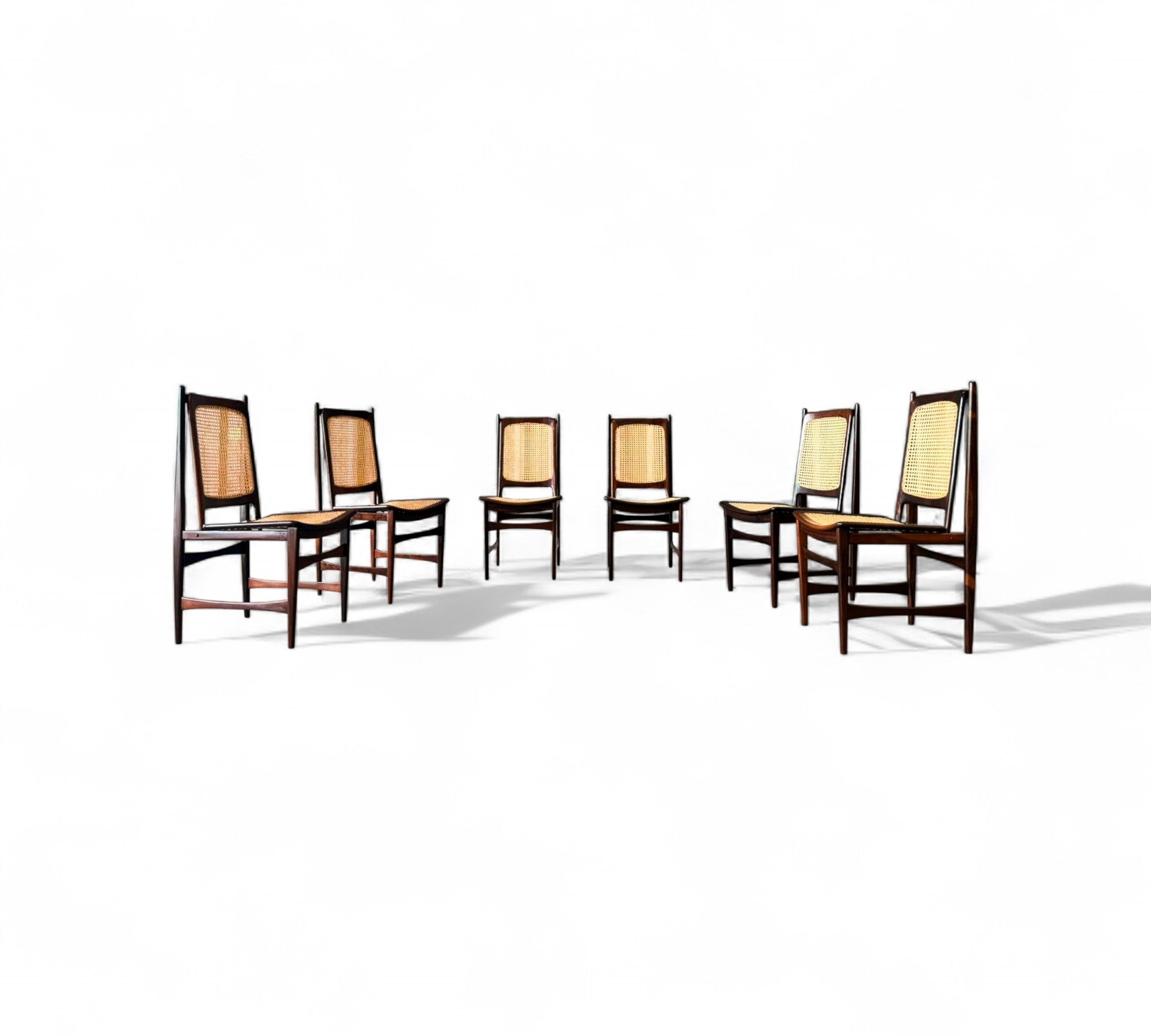 Set of 6 Chairs in Rosewood & Cane, Unknown, 1960s - Lot 577