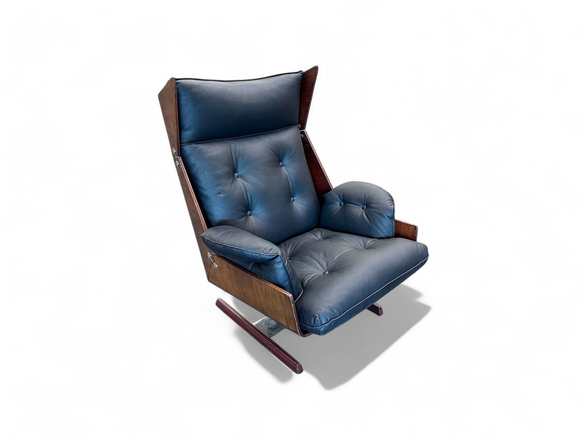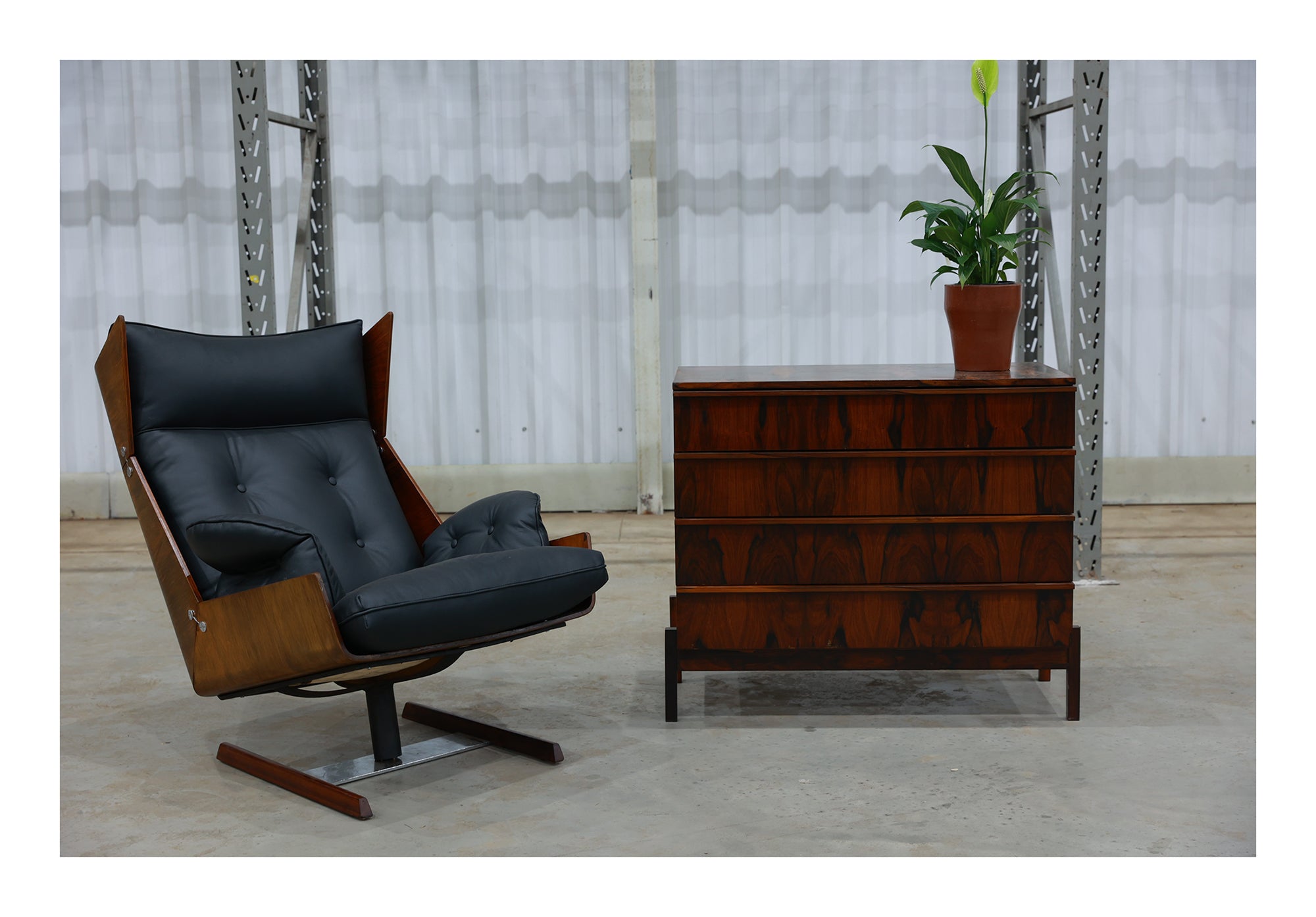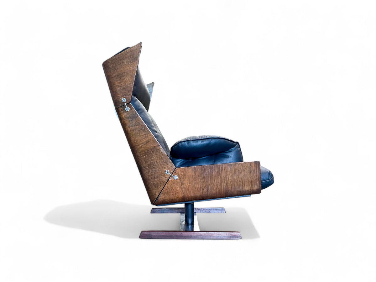 Armchair in Rosewood, Black Leather & Metal, JD Moveis, 1950s - Lot 227