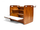 This mid-century modern bar cart is expertly crafted from Freijo hardwood, exhibiting two storage doors with two shelves and bottle holders, retaining its original four wheels. The wood has been refinished to maintain its excellent condition. The bar cart's exquisite design exudes elegance and innovation, enhancing any interior space. Celebrated for his unique and creative use of tropical wood, Sergio Rodrigues's legacy as one of Brazil's most iconic mid-century designers is reflected in this stunning piece.