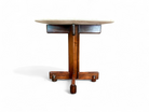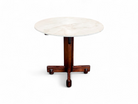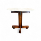 The “Alex” side table is crafted entirely from Brazilian rosewood, also known as jacaranda. It boasts a unique "X" shaped wood base and a captivating circular table top in white marble. Meticulously refinished, the table highlights the timeless beauty of its old solid rosewood. This mid-century gem is an ideal addition to any home decor style, with its iconic design and size making it a must-have for every mid-century modern enthusiast.