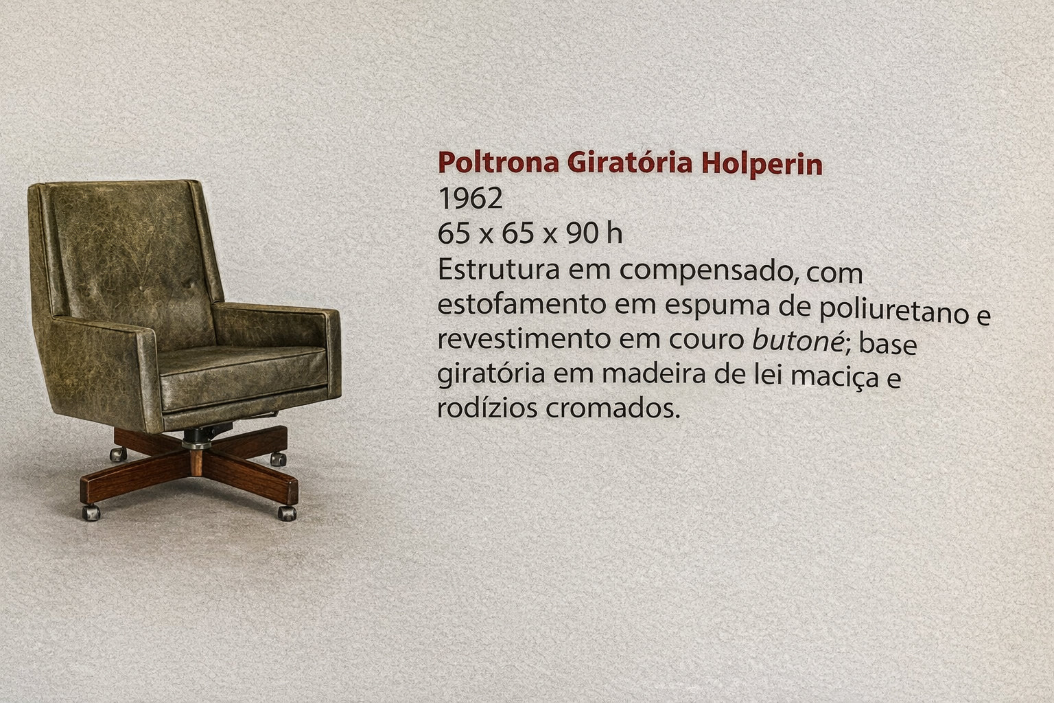 This model is considered a development of Rodrigues’s earlier Ambassador armchair, designed in 1960 for the Brazilian Embassy at the Palácio Doria Pamphili in Rome. The Holperin retains the structural confidence of the earlier design.