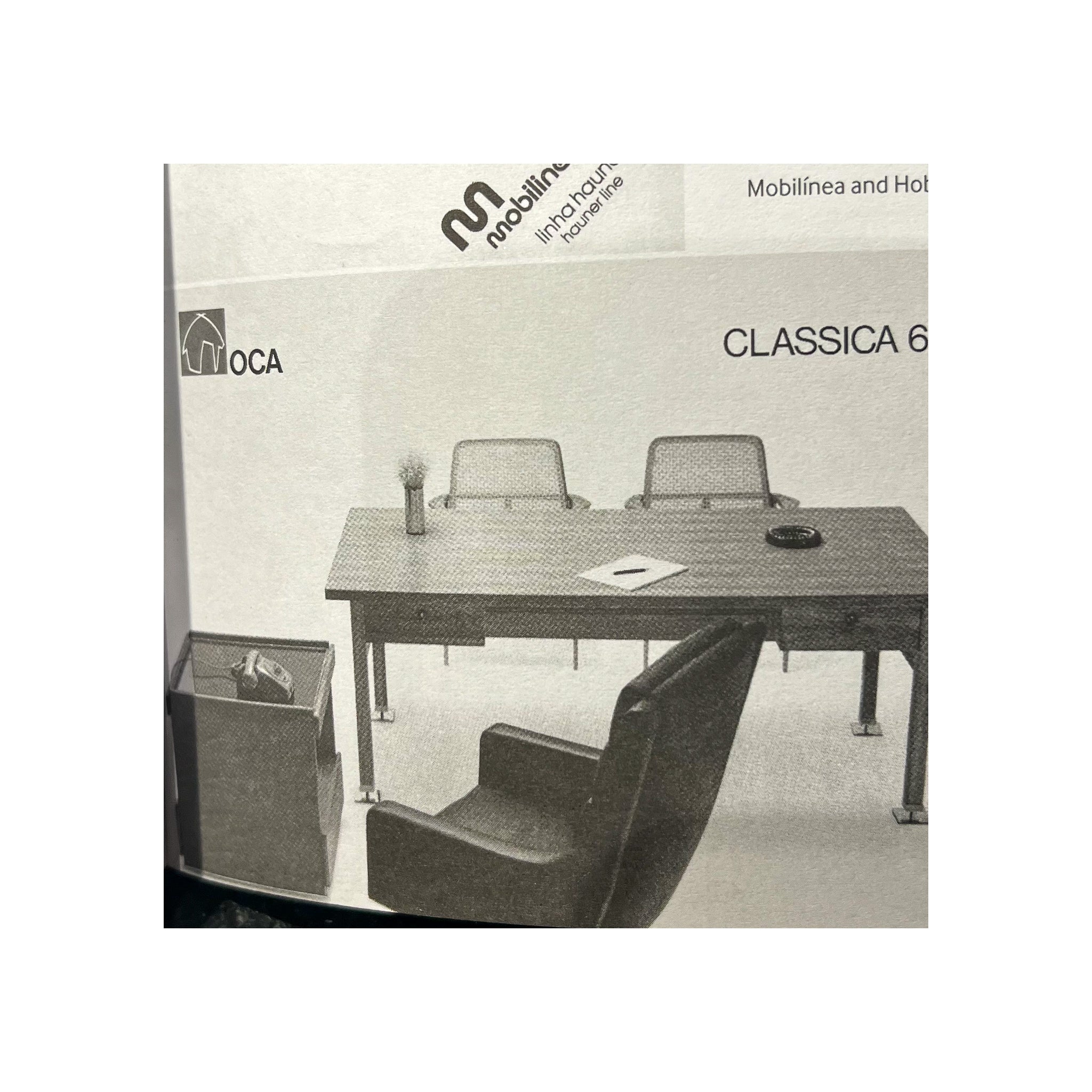 The mid-century modern “Holperin” armchair was designed in 1962 by Sergio Rodrigues during his time at Oca. The base is made with solid Brazilian rosewood. The wood has been refinished and the seat has been reupholstered in green leather. This Brazilian Modern armchair model was a spinoff of the “Ambassador” armchair designed by Sergio Rodrigues two years prior in 1960 for the Brazilian embassy at the Palácio Doria Pamphili in Rome. The last images are vintage publications (ads and books) showcasing this classic.