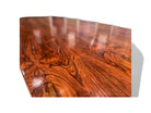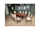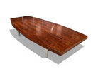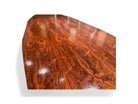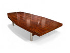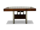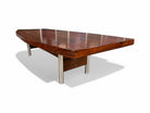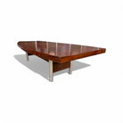 This spacious dining/conference room table, accommodating up to twelve people, is crafted from Imbuia wood with a Brazilian rosewood (Jacaranda) veneer. The veneer has been recently applied, and the metal legs have been re-plated. Exuding elegance and functionality- this table was previously used as a conference table at the Central Bank of Brazil.