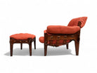 Made only in 1963, the "Moleca" lounge chair is a rare and highly desirable collectible. It has been carefully restored by a skilled craftsman, maintaining its original beauty and design. The plush, comfortable vermillion cotton mix upholstery is both inviting and visually striking.