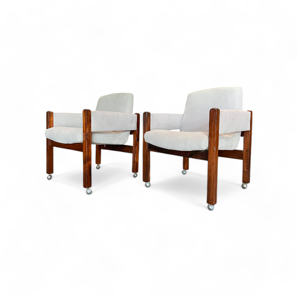 Pair of “Jimi” Armchairs with Wheels in Rosewood & Velvet, Sergio Rodrigues, 1971 - Lot 420