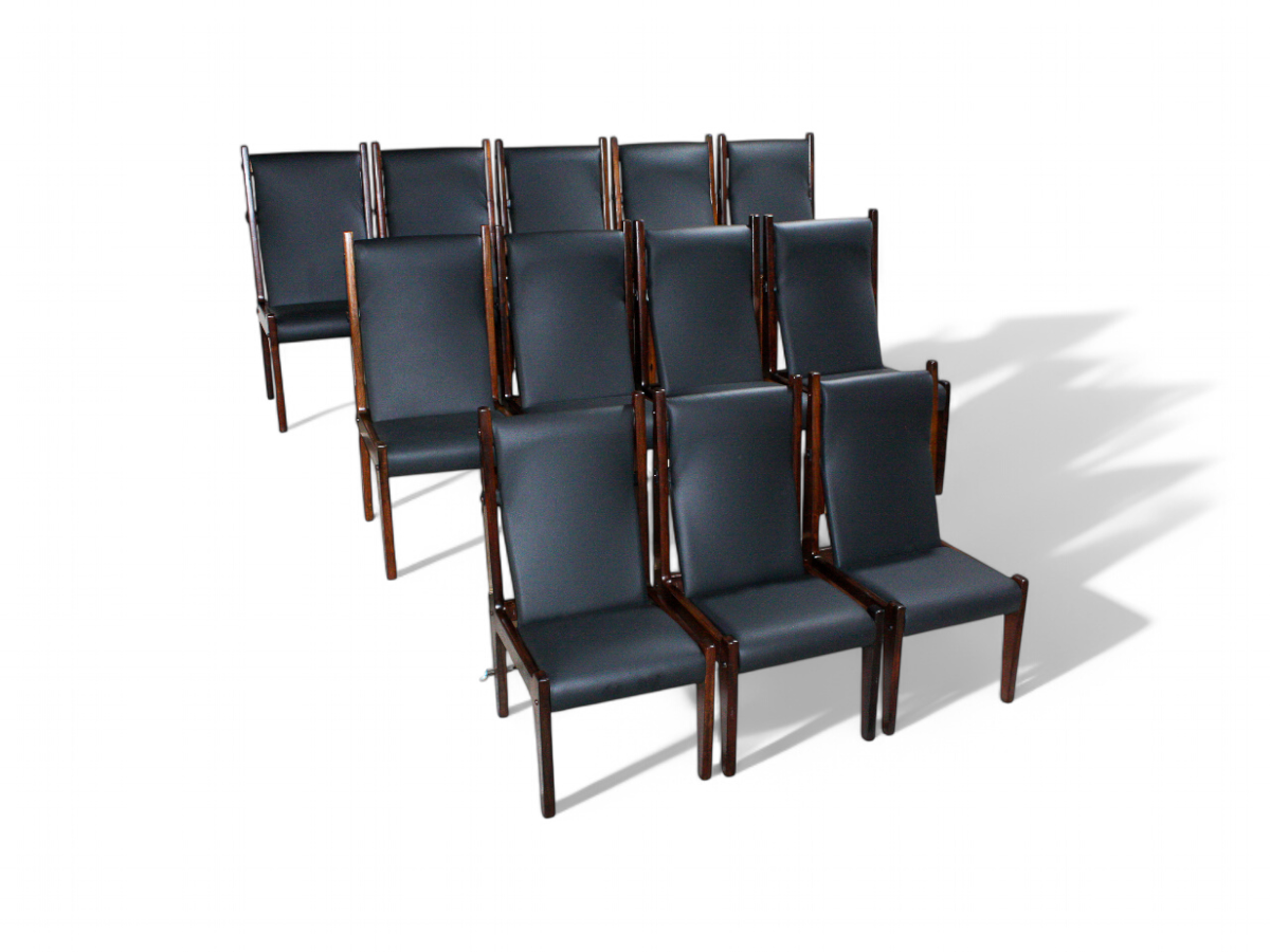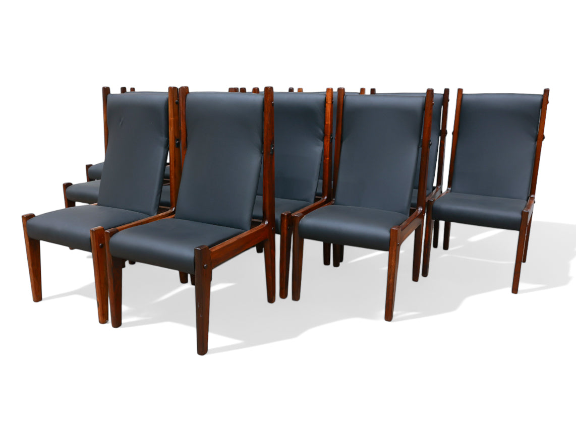 Set of 12 Dining Chairs in Rosewood & Black Leather, Sergio Rodrigues, 1960s - Lot 200