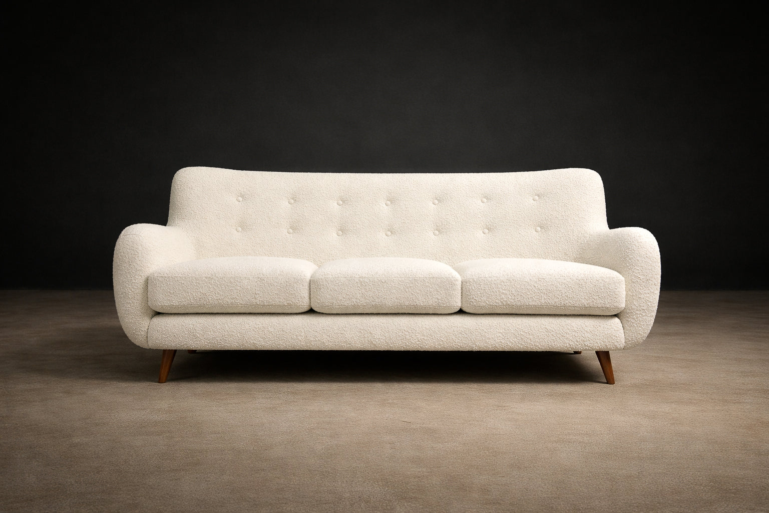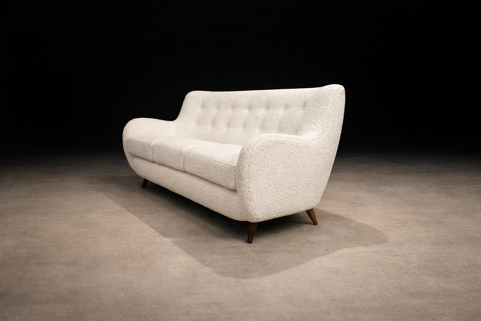 Sofa in Hardwood and Off-White Bouclé by Giuseppe Scapinelli, Brazil, 1950s - Lot 525B