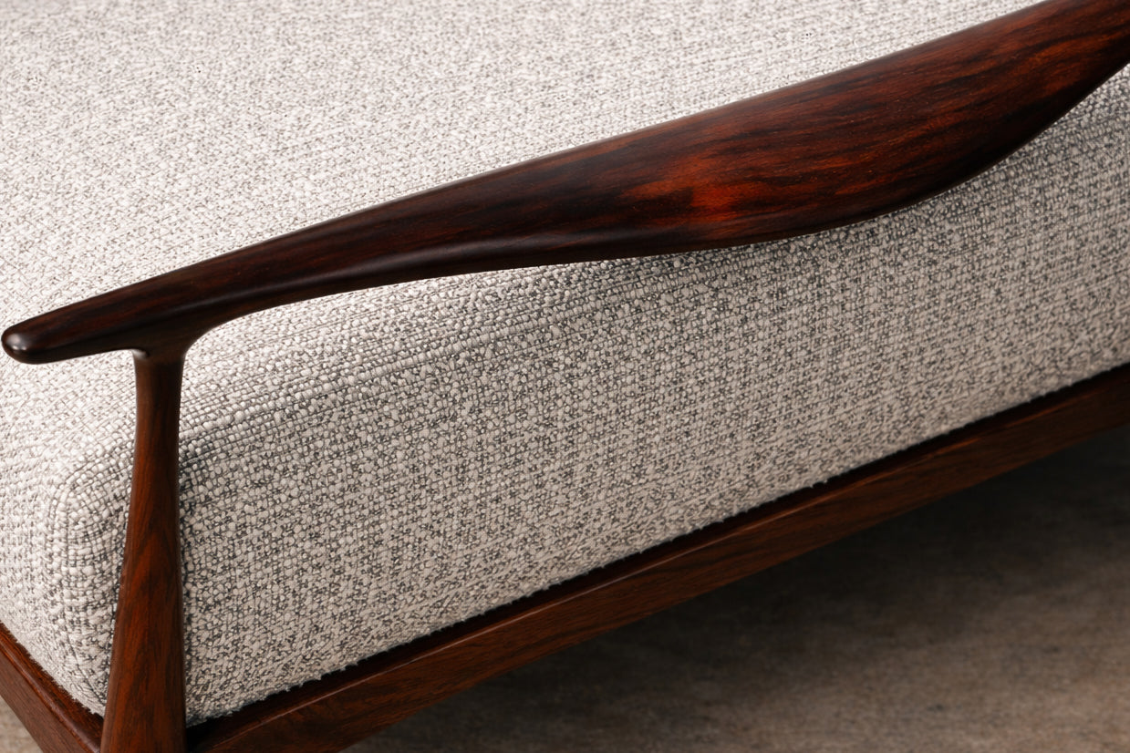 "Macedo" Sofa in Rosewood & Grey Boucle, Sergio Rodrigues, 1960s - Lot 548A