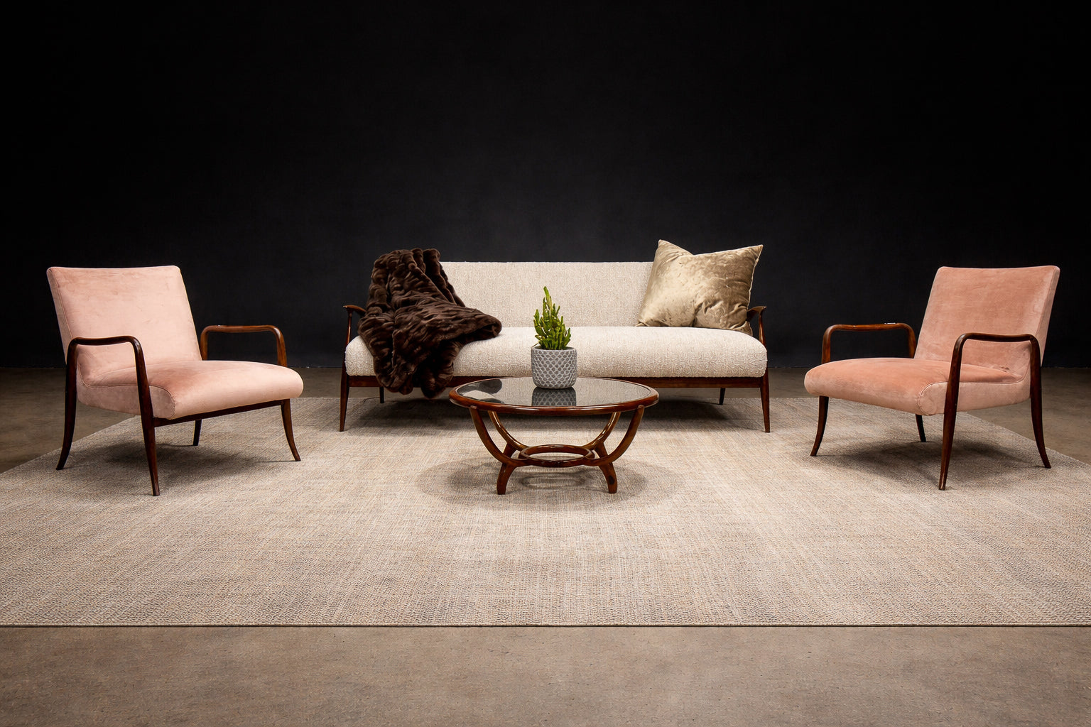 “Rectangular” Four-Seat Sofa in Hardwood & Antique Rose Velvet by Joaquim Tenreiro, Brazil, 1950s - Lot 501