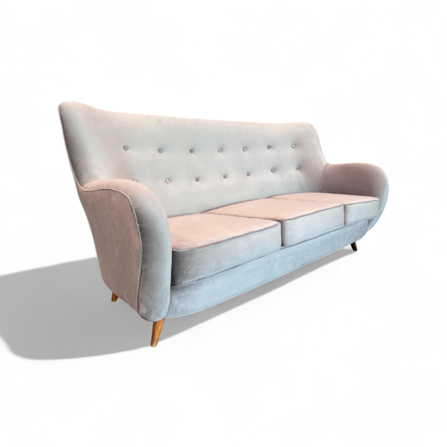 Sofa in Rosewood and Blue Fabric, Giuseppe Scapinelli, 1950s - Lot 449A