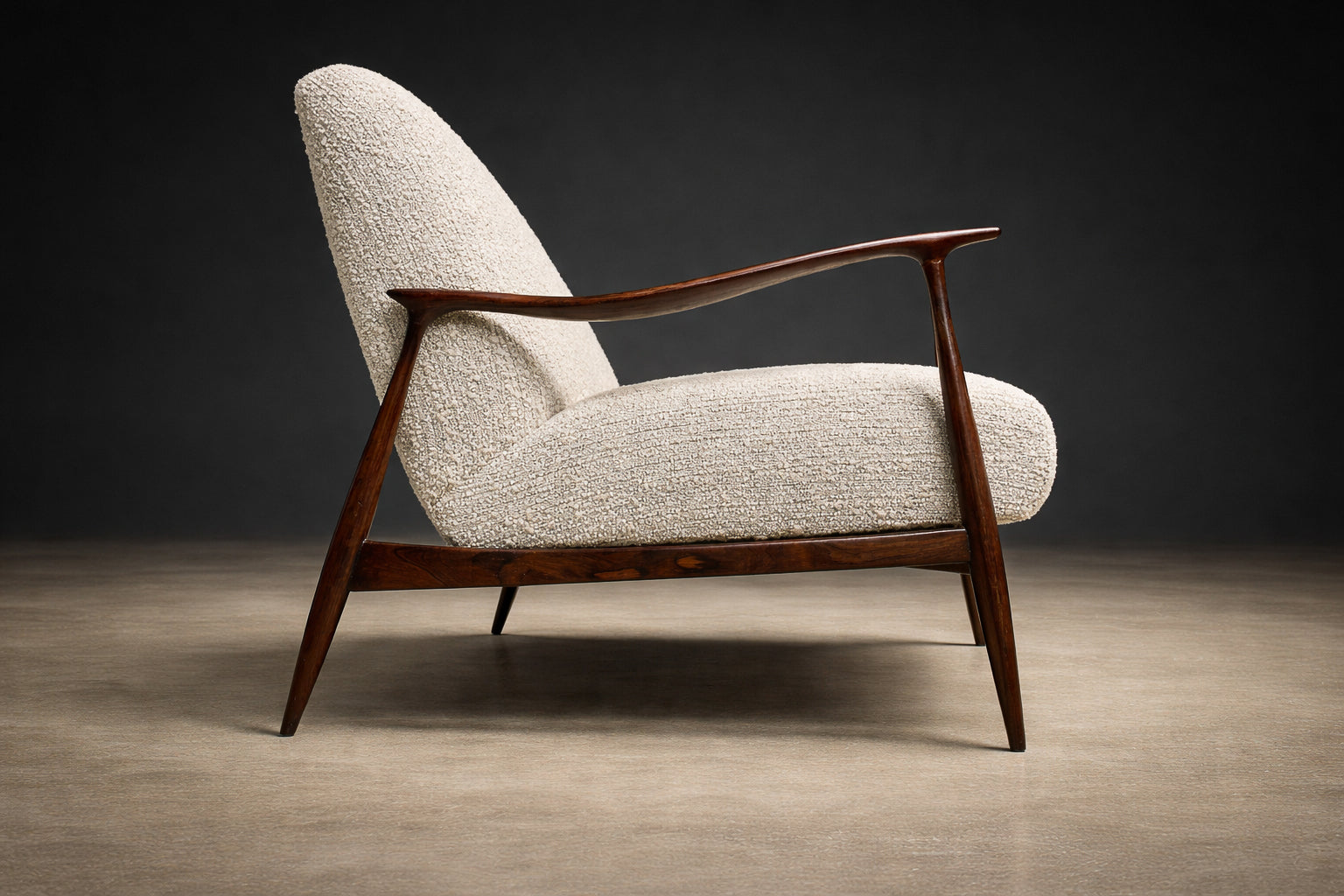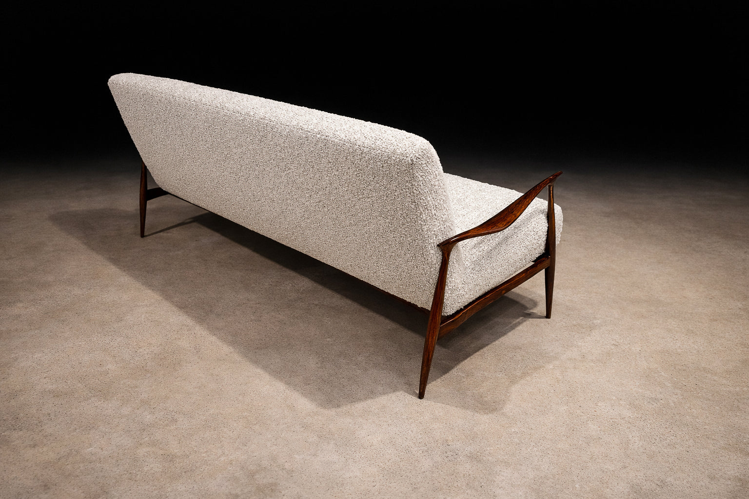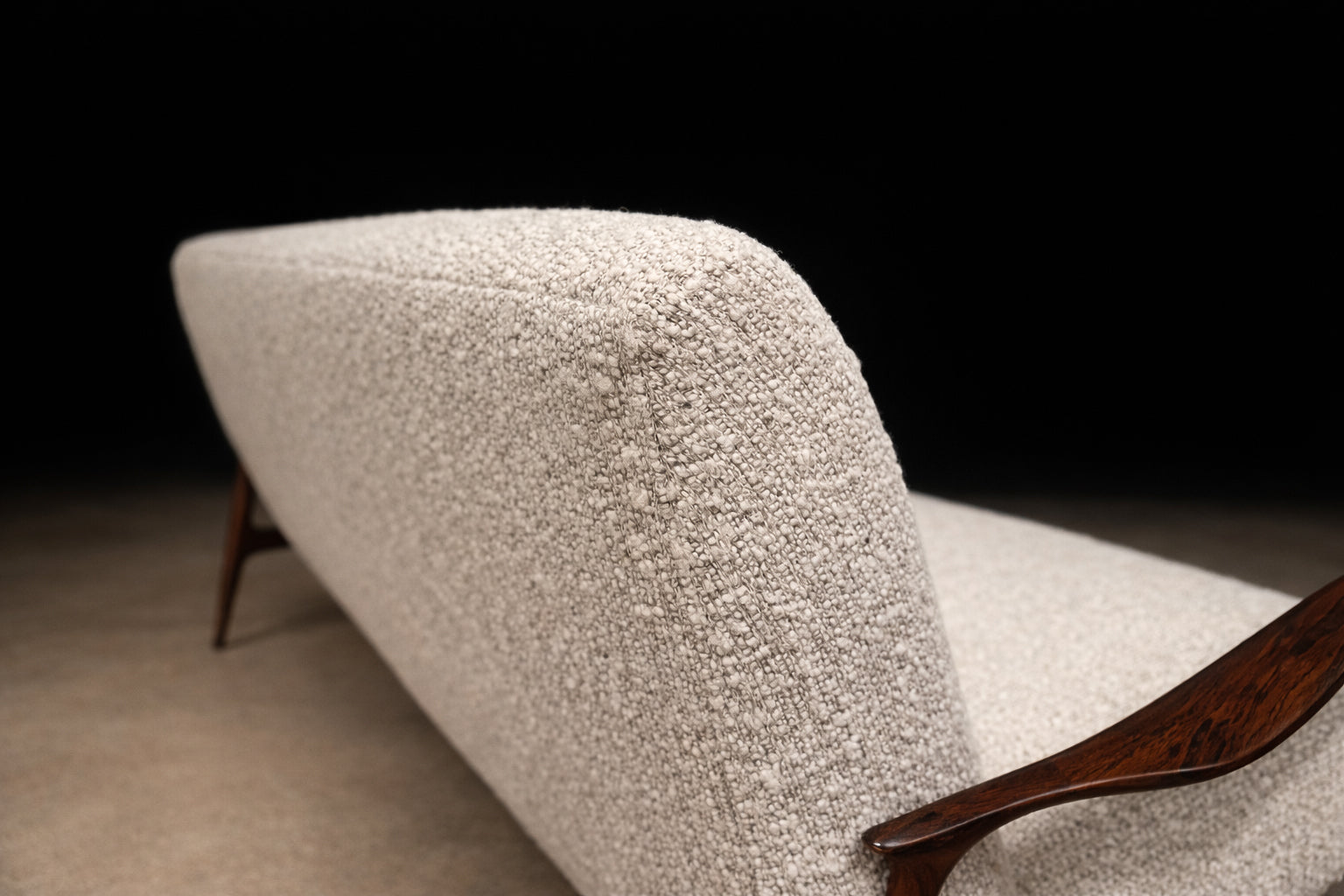 Brazilian Modern “Stella” Three-Seat Sofa in Rosewood & Bouclé by Sergio Rodrigues, Brazil - Lot 725A2