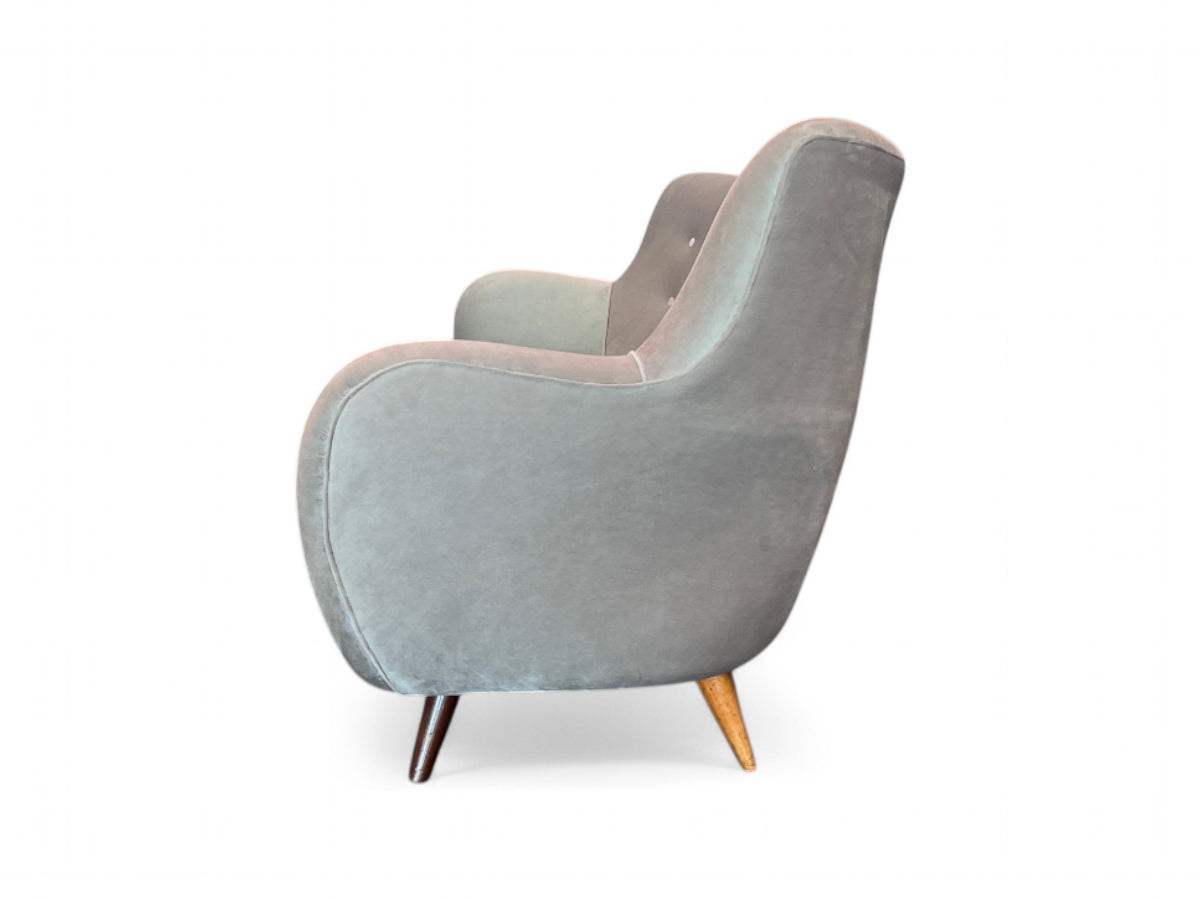 “Curva” Sofa in Hardwood and Light Blue Fabric, Joaquim Tenreiro, 1950s - Lot 380A