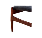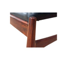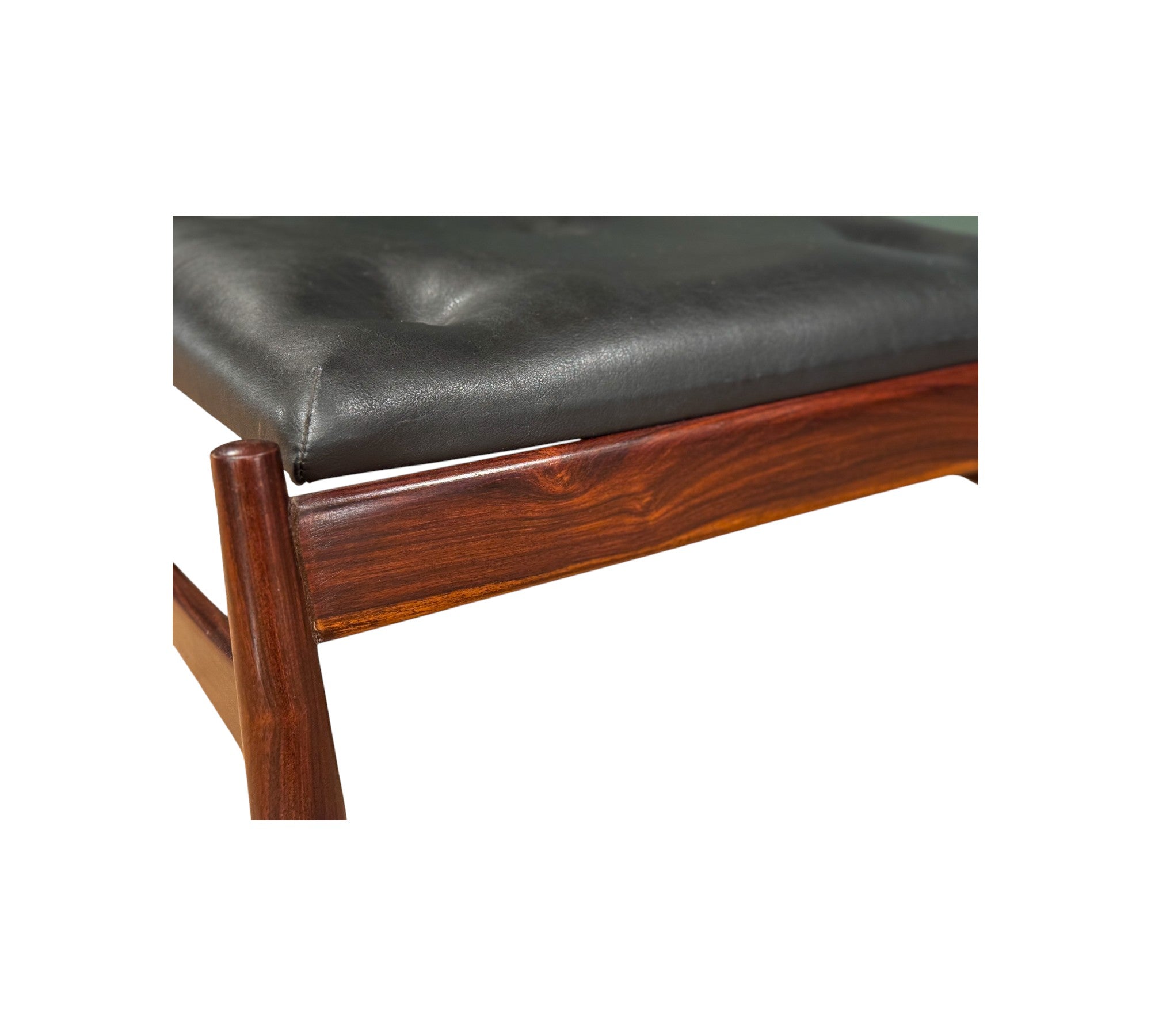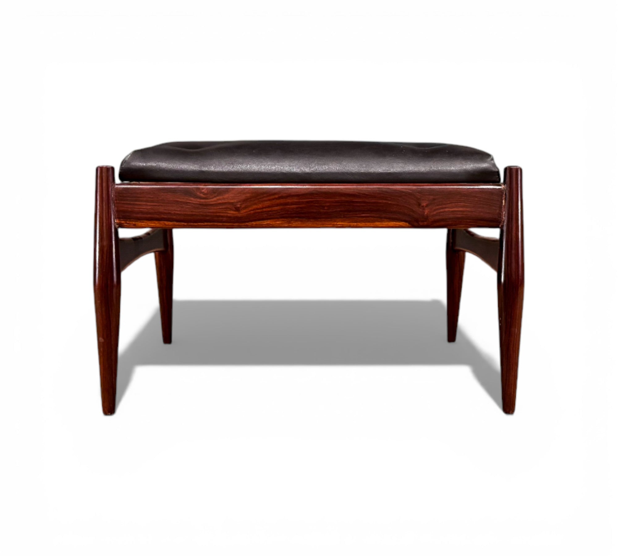 This mid-century ottoman by Liceu de Artes e Ofícios is crafted in solid rosewood and upholstered in its original black leather, which remains in good condition for its age. The piece reflects the workshop’s refined mid-century Brazilian craftsmanship, with clean lines, tapered legs, and a sturdy frame that highlights the natural grain and depth of the rosewood.