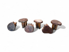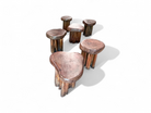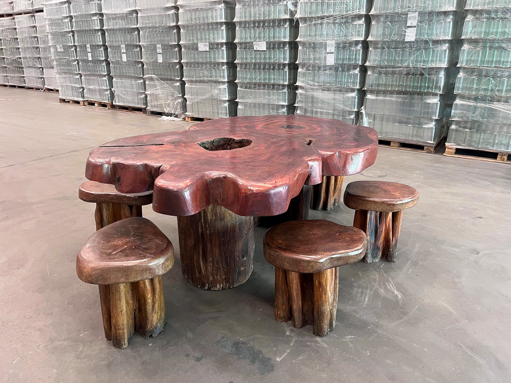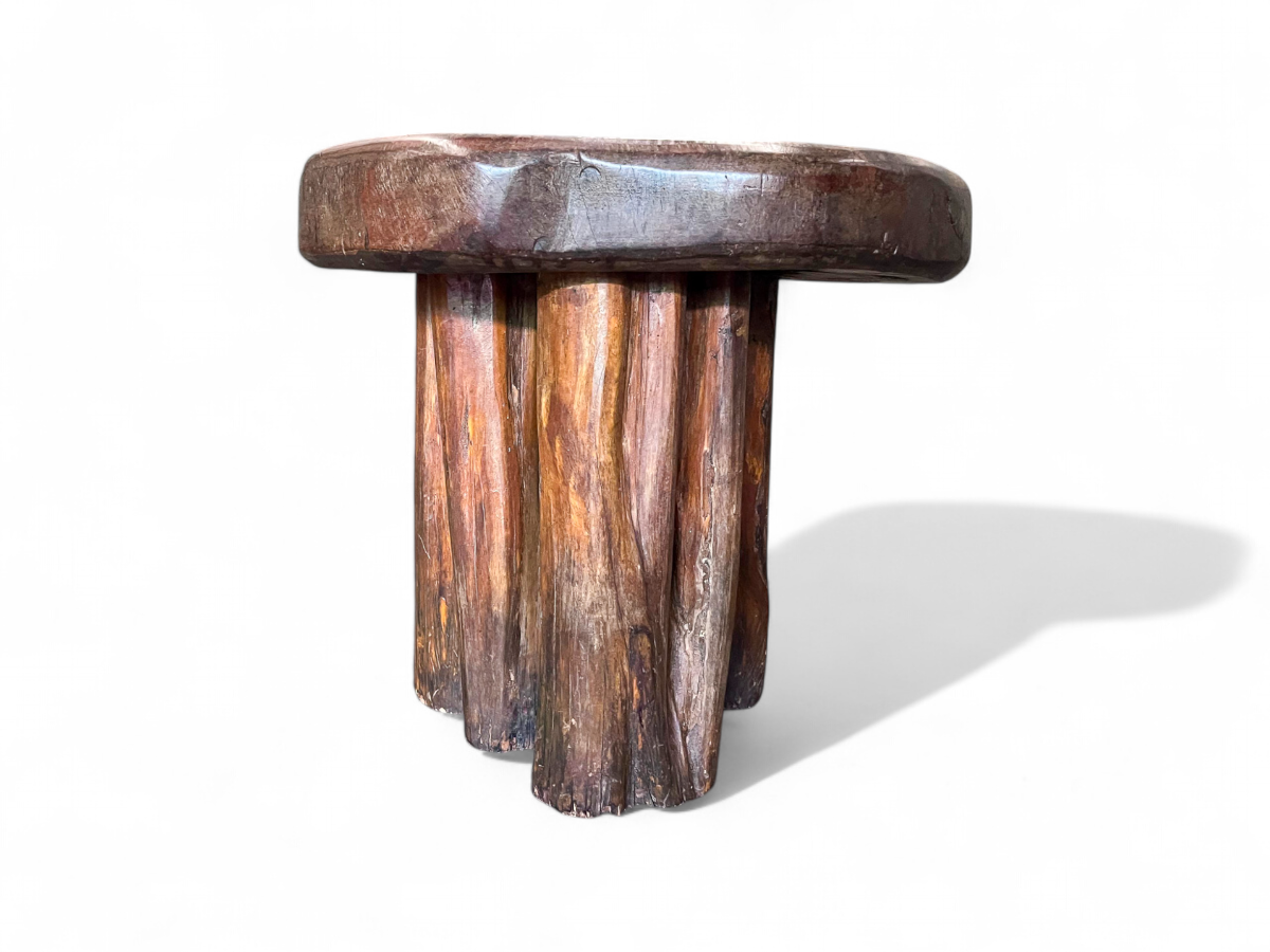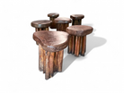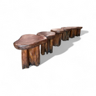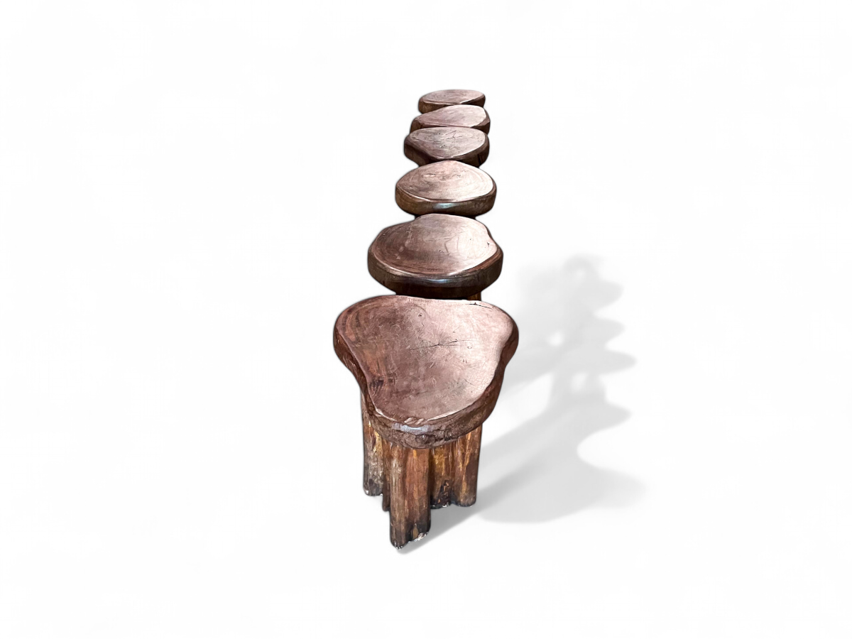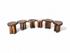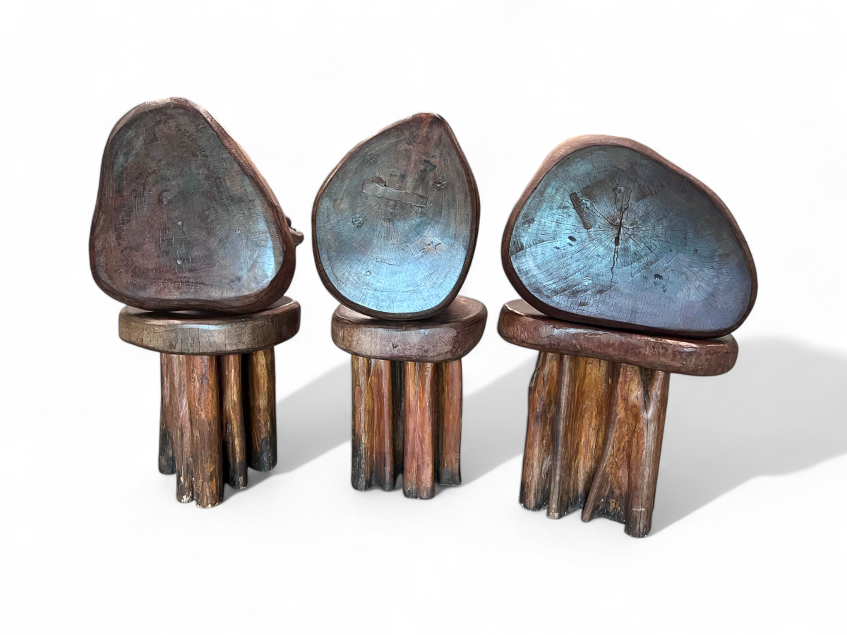 Author Unknown - A vintage set of six sculptural stools, meticulously handcrafted from tree trunks and featuring organic shapes. This furniture style, known as "Denuncia," originated in Brazil during the 1970s to highlight the issue of deforestation in the Atlantic Forest (Mata Atlântica). Importantly, the wood used for these stools comes from repurposed materials that would have otherwise been discarded. The stools have been polished, cleaned, and are in excellent condition. Additionally, there is a matching table available as lot 764 as is shown in the last two images.
