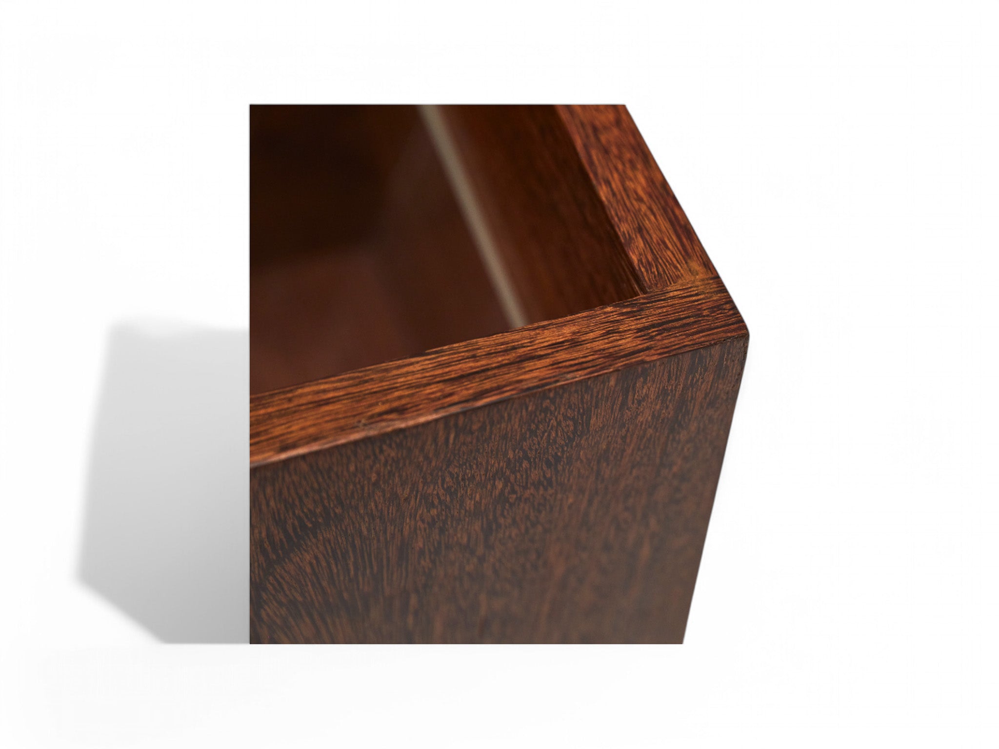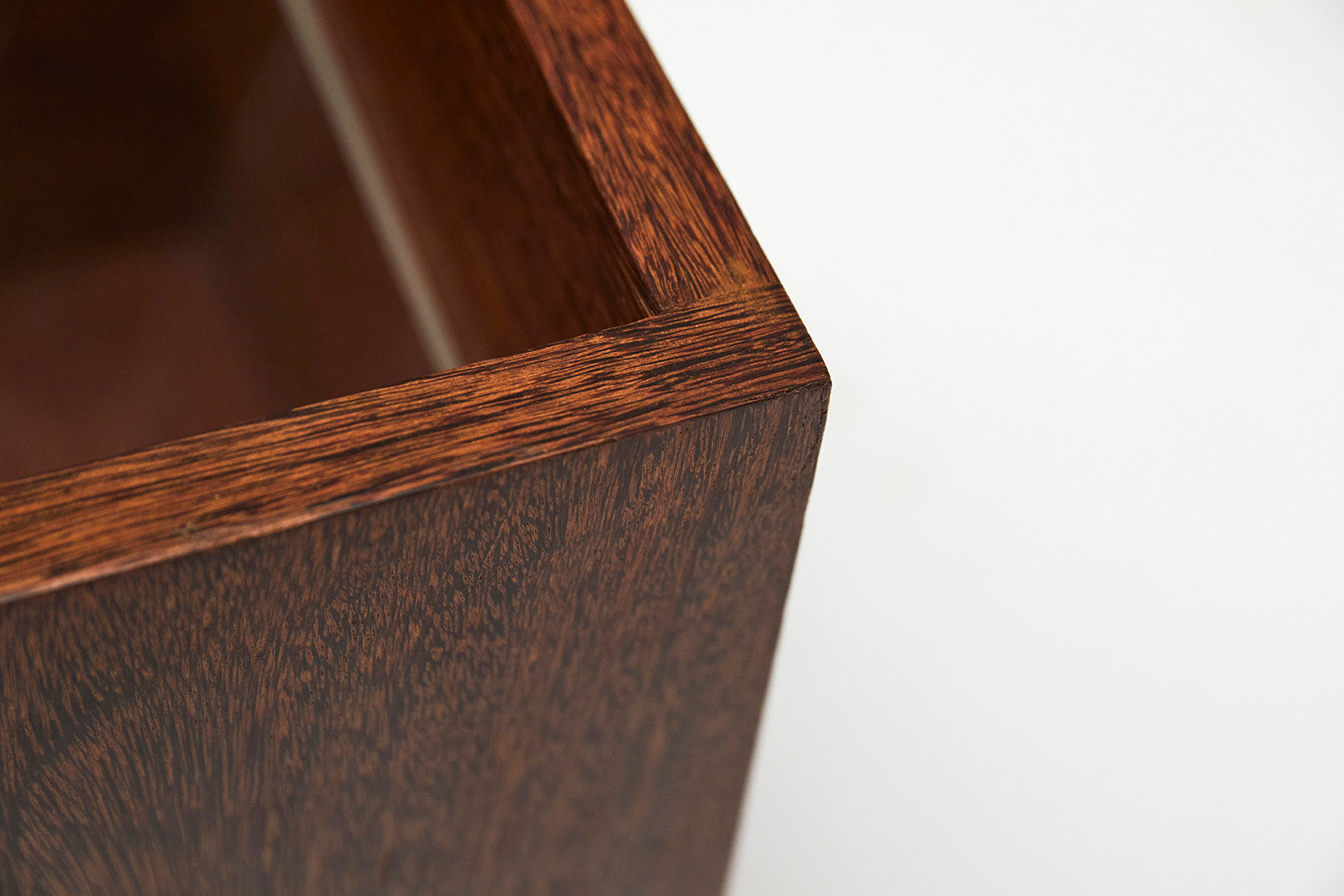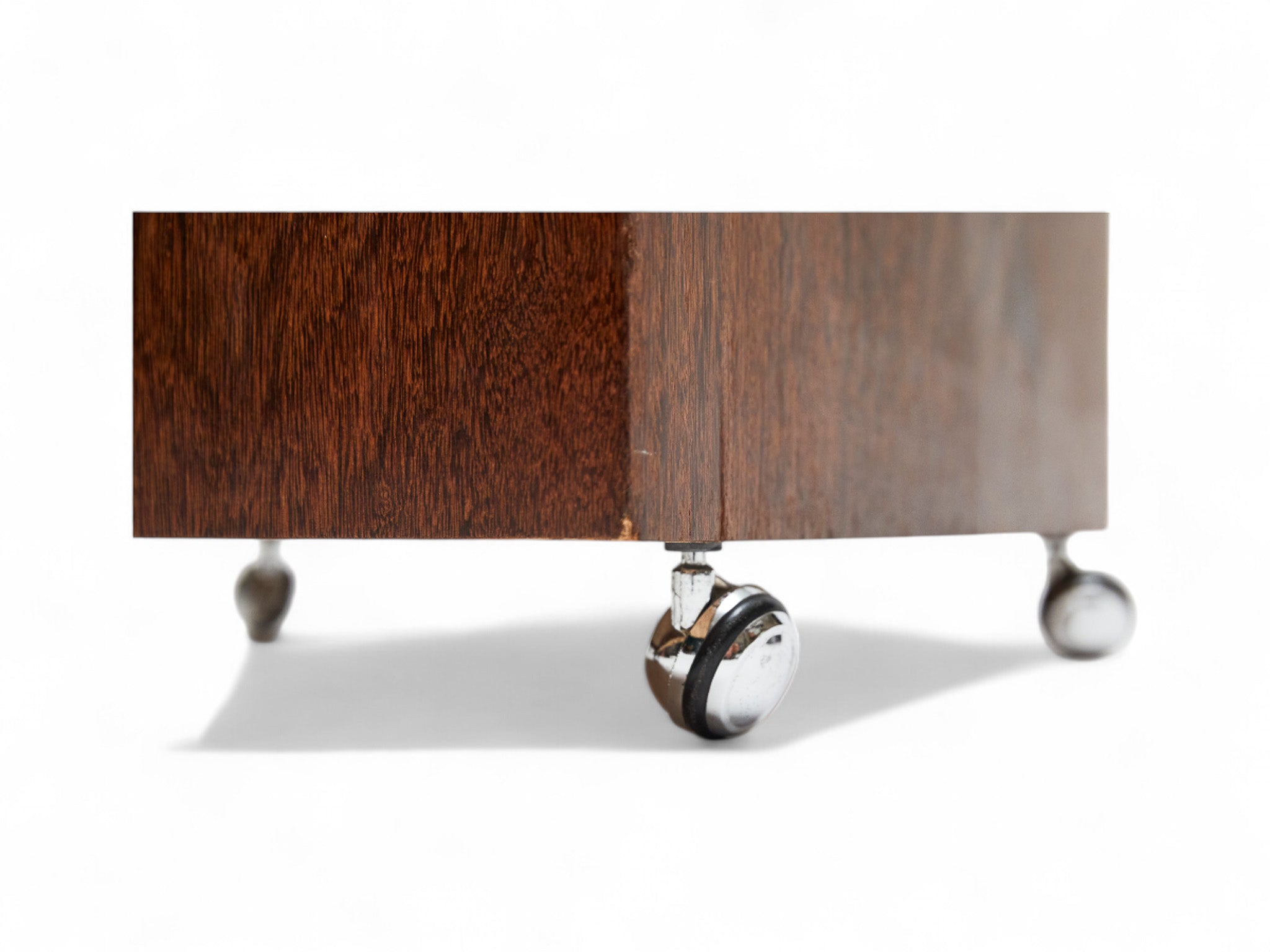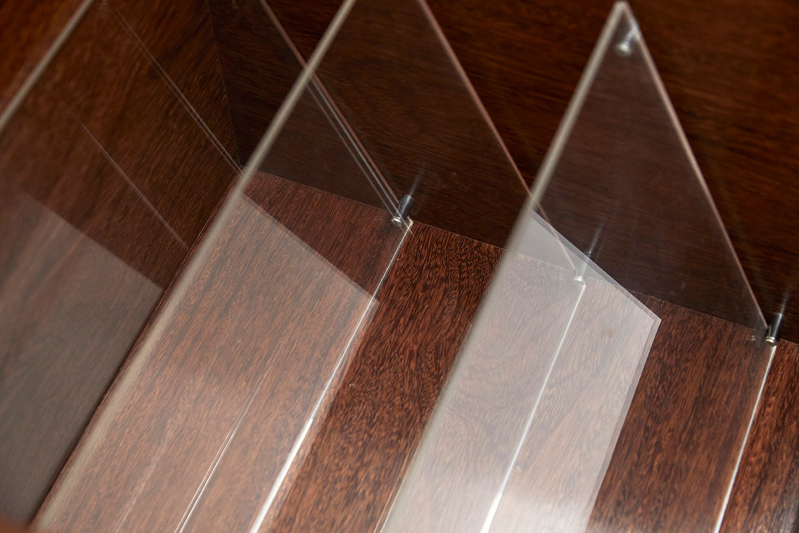 This vintage magazine rack is made with sucupira hardwood, and consists of four chrome wheels and three acrylic dividers. The wood has been refinished, highlighting its stunning grain and beautiful tone. Besides the marks of time, it is in excellent condition.