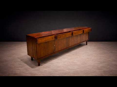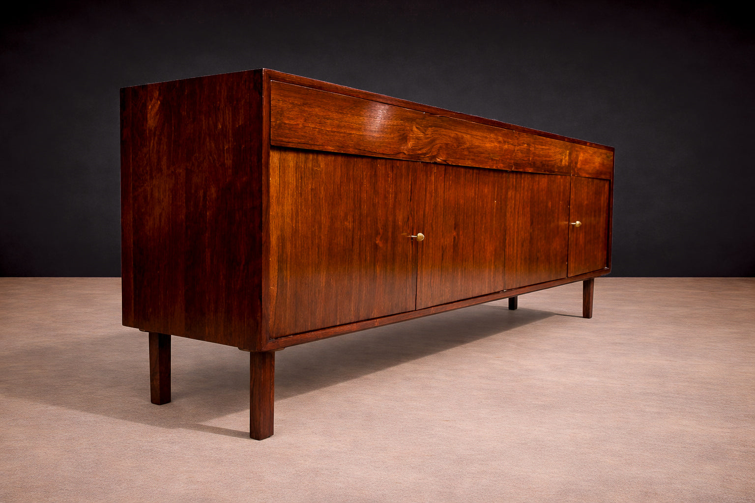 Constructed entirely in jacarandá (Brazilian rosewood), the credenza reflects material integrity through its dense grain and deep tonal variation. Craftsmanship is expressed through precise construction and alignment, with surfaces and volumes resolved through proportion rather than ornament.