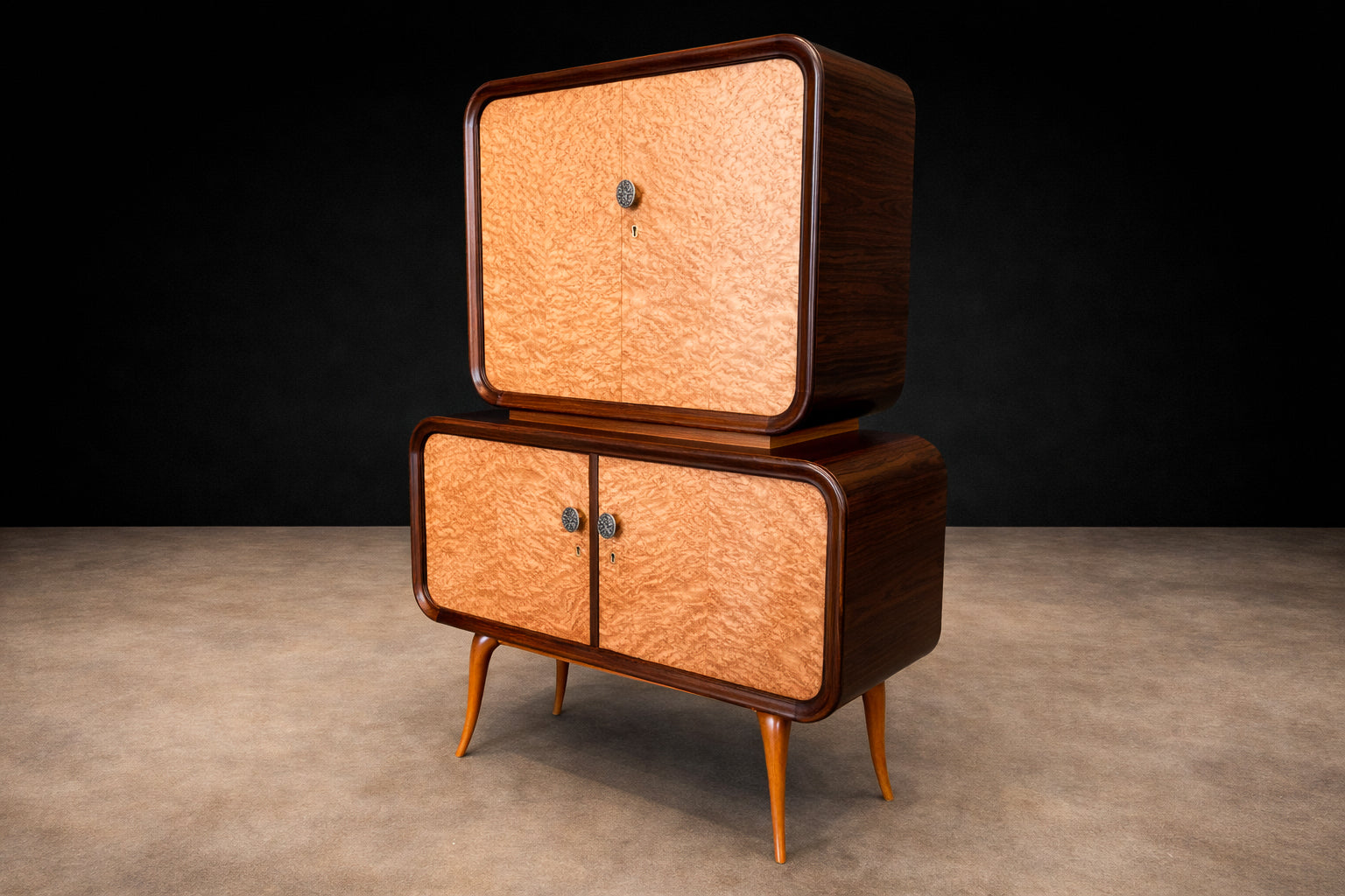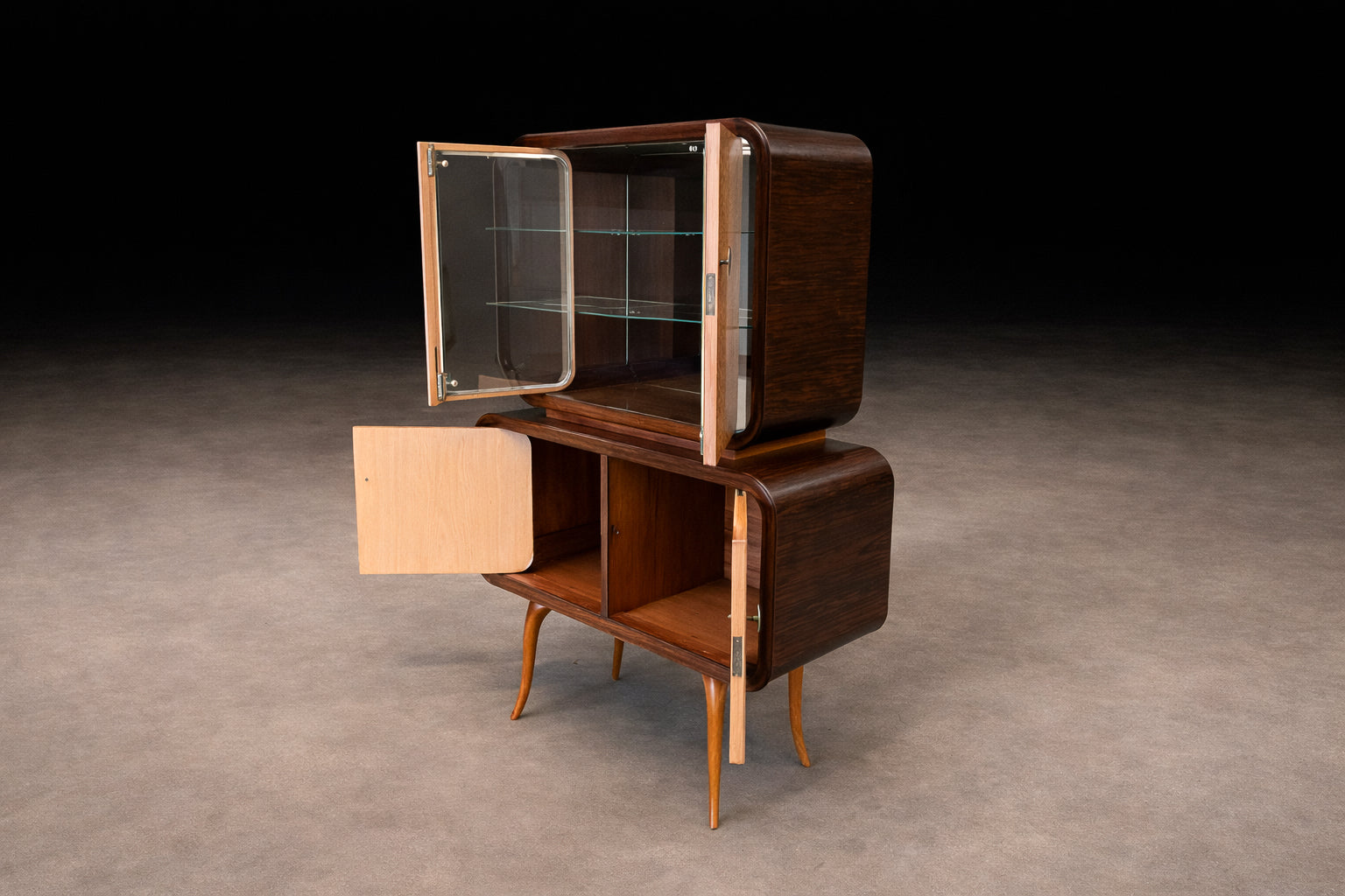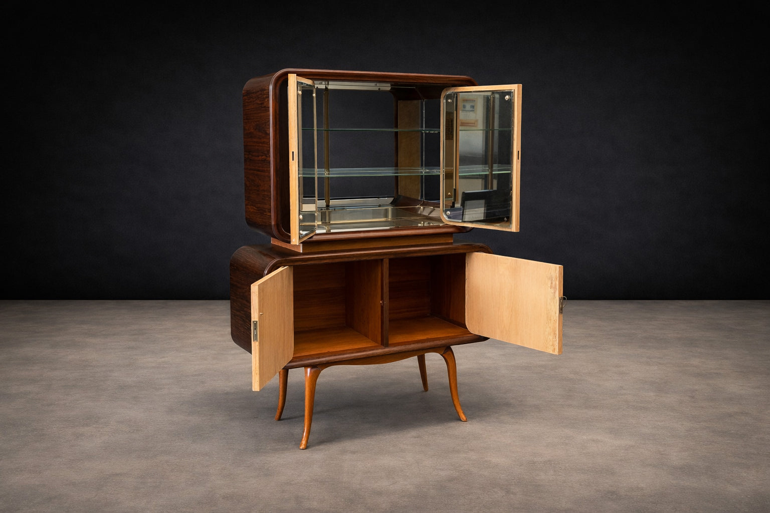 Mid-Century Bar Cabinet in Brazilian Rosewood with Mirrored & Glass Interior, Brazil, 1960s - Lot 860