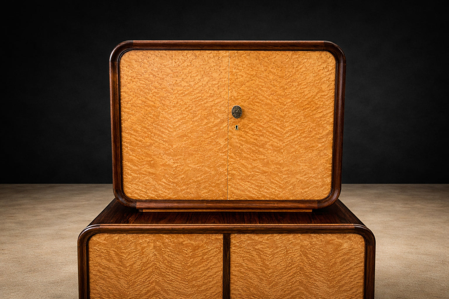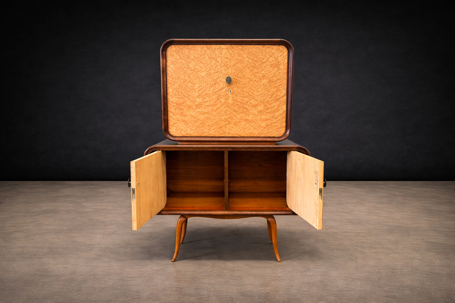 Brazilian Bar in Imbuia, Roxinho & Pau Marfim with Party Motif Marquetry, 1950s - Lot 230A