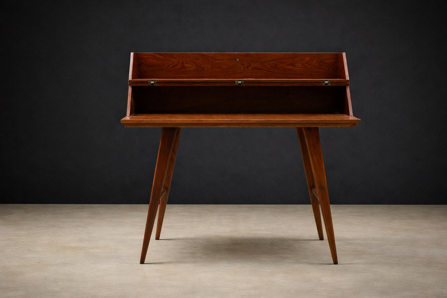 Elegant, practical, and visually light in proportion, this desk exemplifies the intelligent craftsmanship and understated sophistication that define Brazilian modern furniture of the 1950s.