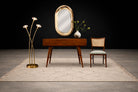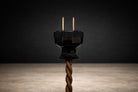 The base remains visually minimal, allowing the curving stems to define the piece architecturally while maintaining stability. The lamp has been newly rewired with a period-appropriate braided cable, preserving its vintage character while ensuring functionality for contemporary interiors.