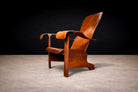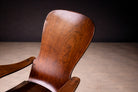 Produced by Cimo in Brazil during the 1950s, this armchair exemplifies the manufacturer’s mastery of bentwood construction and its contribution to mid-century Brazilian design. The composition is defined by a tall, gently contoured backrest that rises from a broad, supportive seat, while the arms extend outward in controlled curves—an interplay of structure and fluidity characteristic of the period.